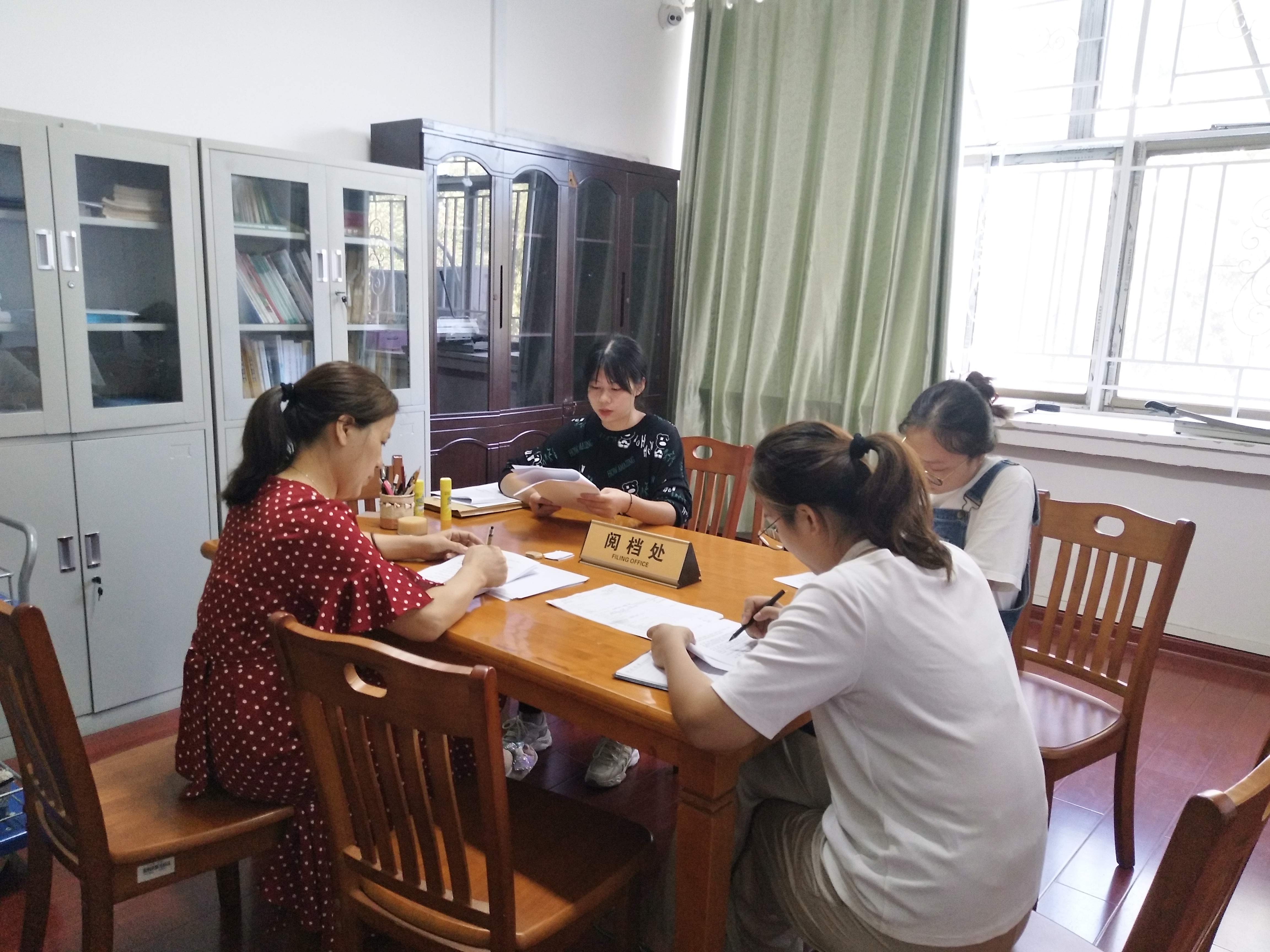 人事档案管理员贾丽君耐心指导同学们学习人事档案的分类和著录方法。