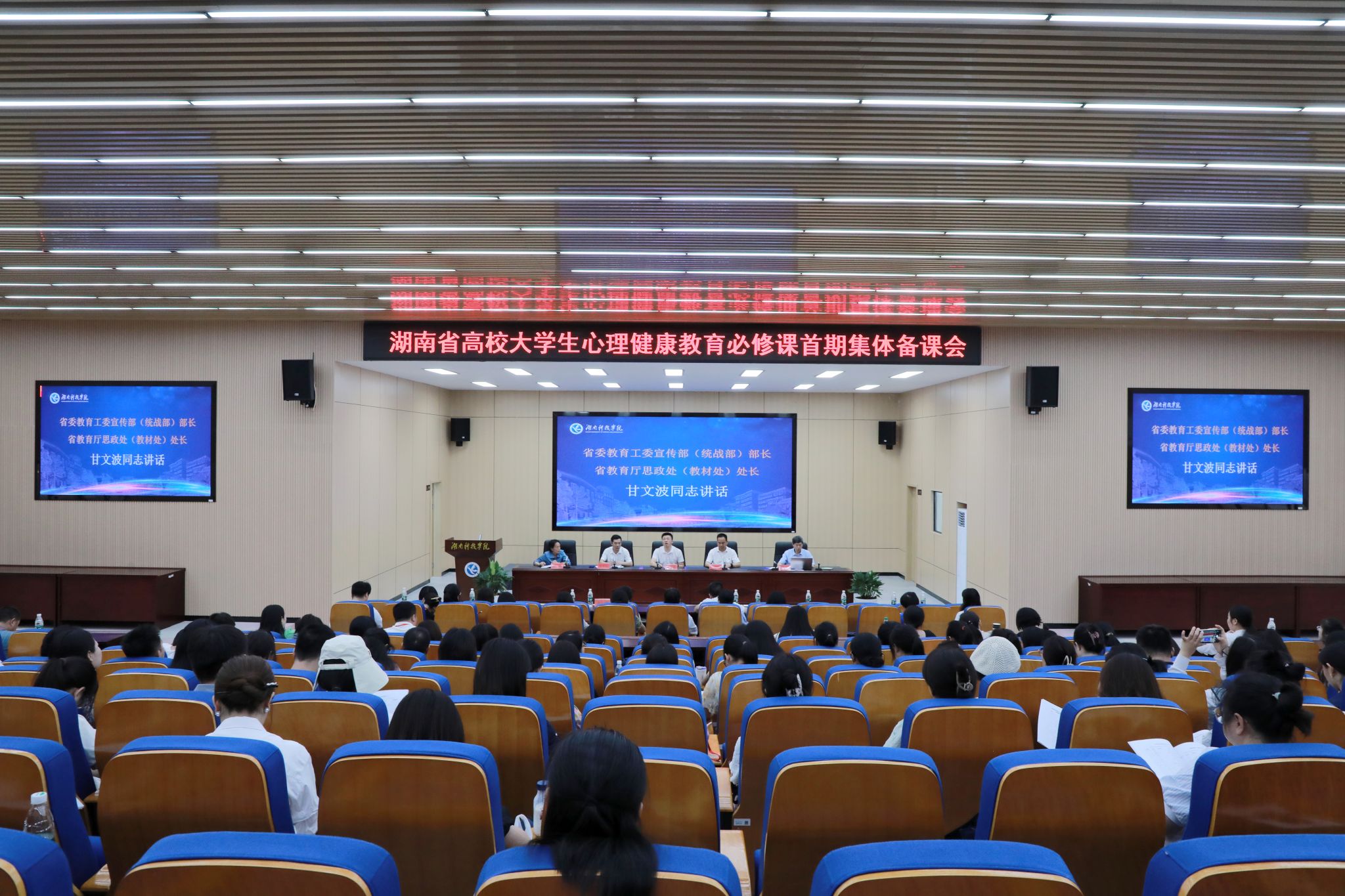 本网讯(通讯员 邓玉 向薛峰)7月5日,2024年湖南省高校大学生心理健康教育必修课首期集体备课会在伟德明德楼100报告厅开班,湖南省委教育工委宣传部部长、湖南省教育厅思政处处长甘文波,校长黄创霞,浙江大学教授、博士生导师、国家万人计划教学名师马建青,中南大学教授、博士生导师胡凯等领导和专家出席,来自全省高校的149位心理健康教育课程教师参加会议。开班式由校党委委员、副校长吴小林主持。