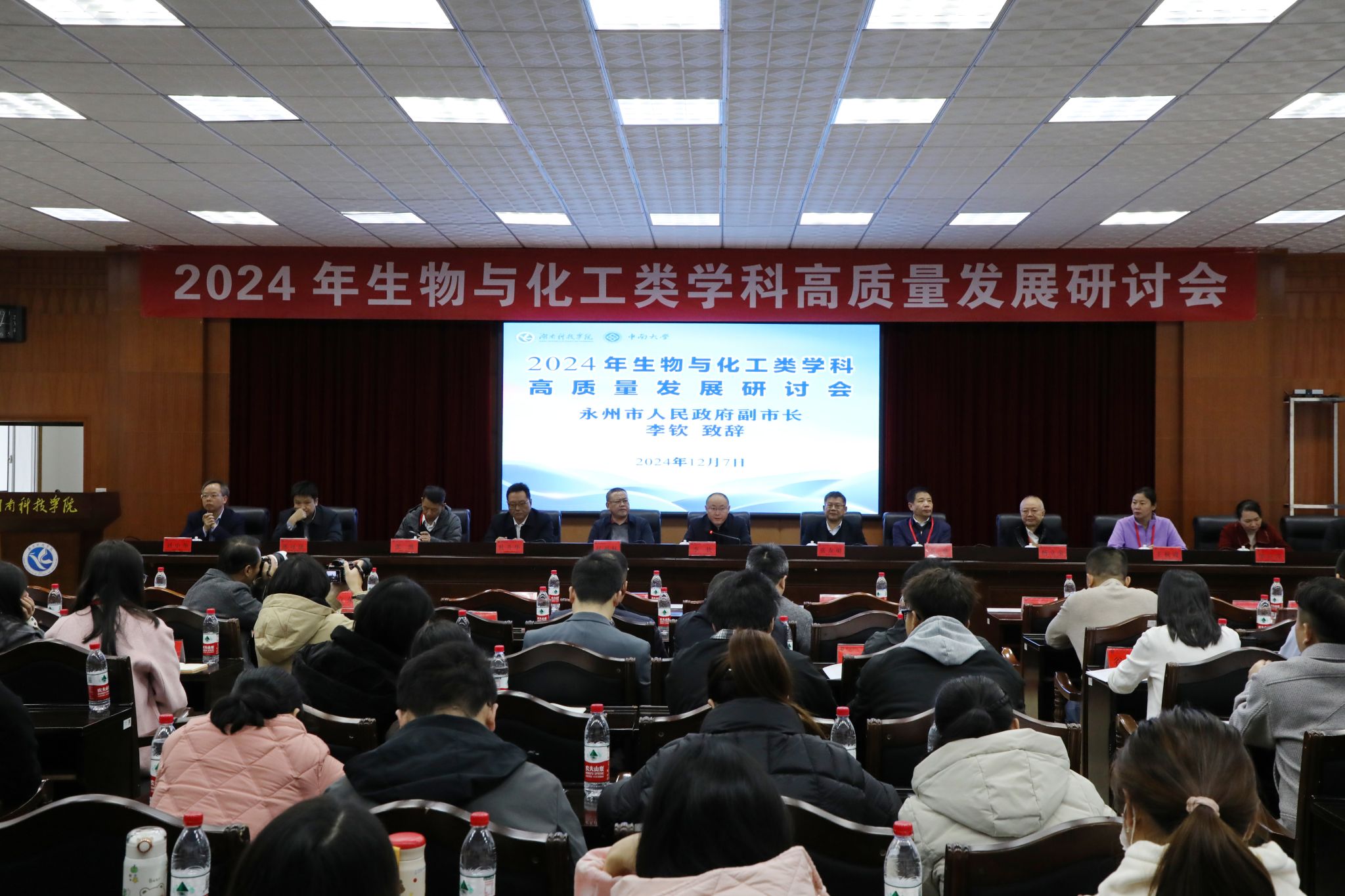 校党委委员、副校长何福林致欢迎辞,湖南海利集团党委委员、副总经理,湖南省化学化工学会秘书长杜升华致辞,永州市副市长李钦出席并讲话。