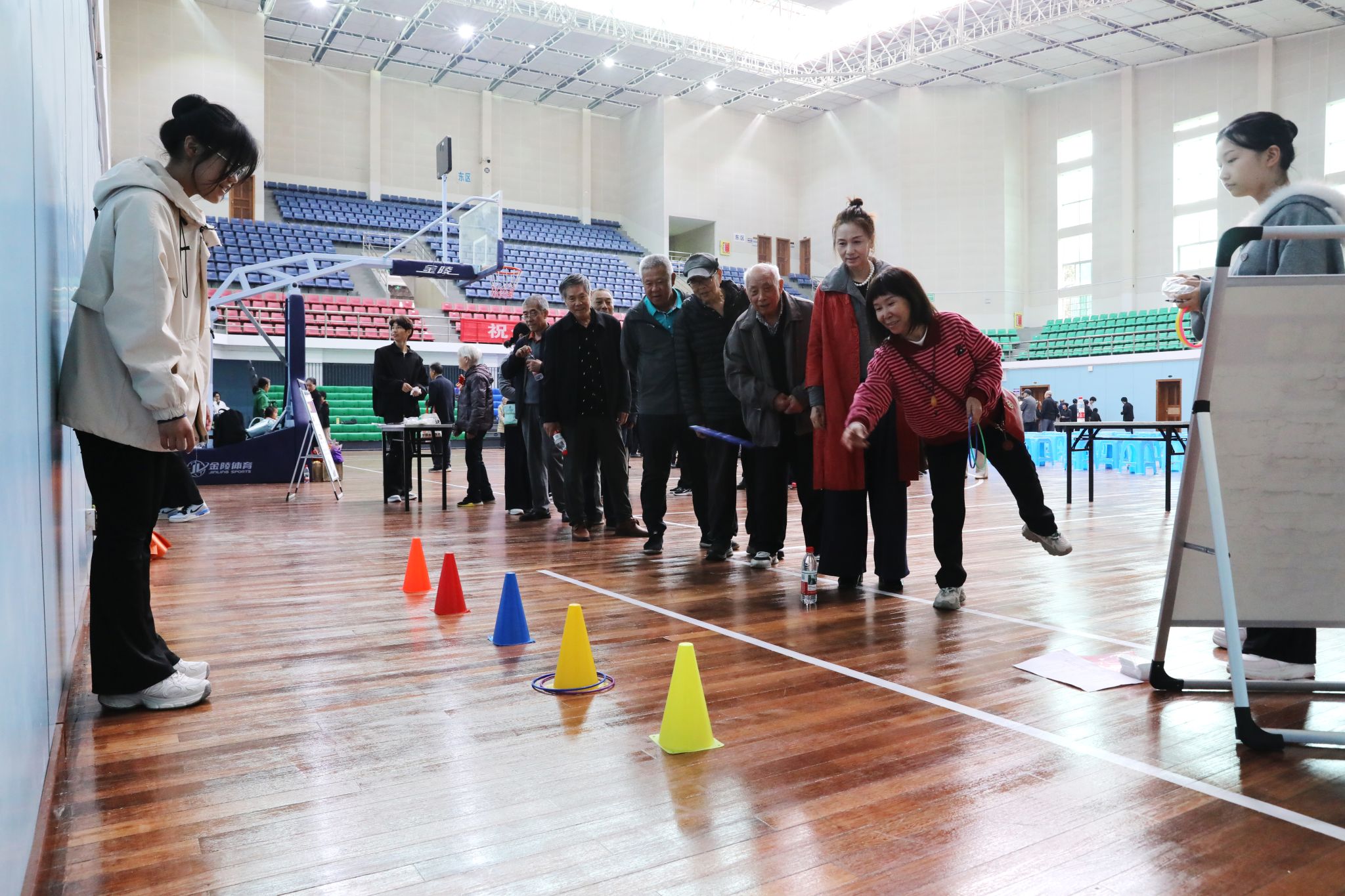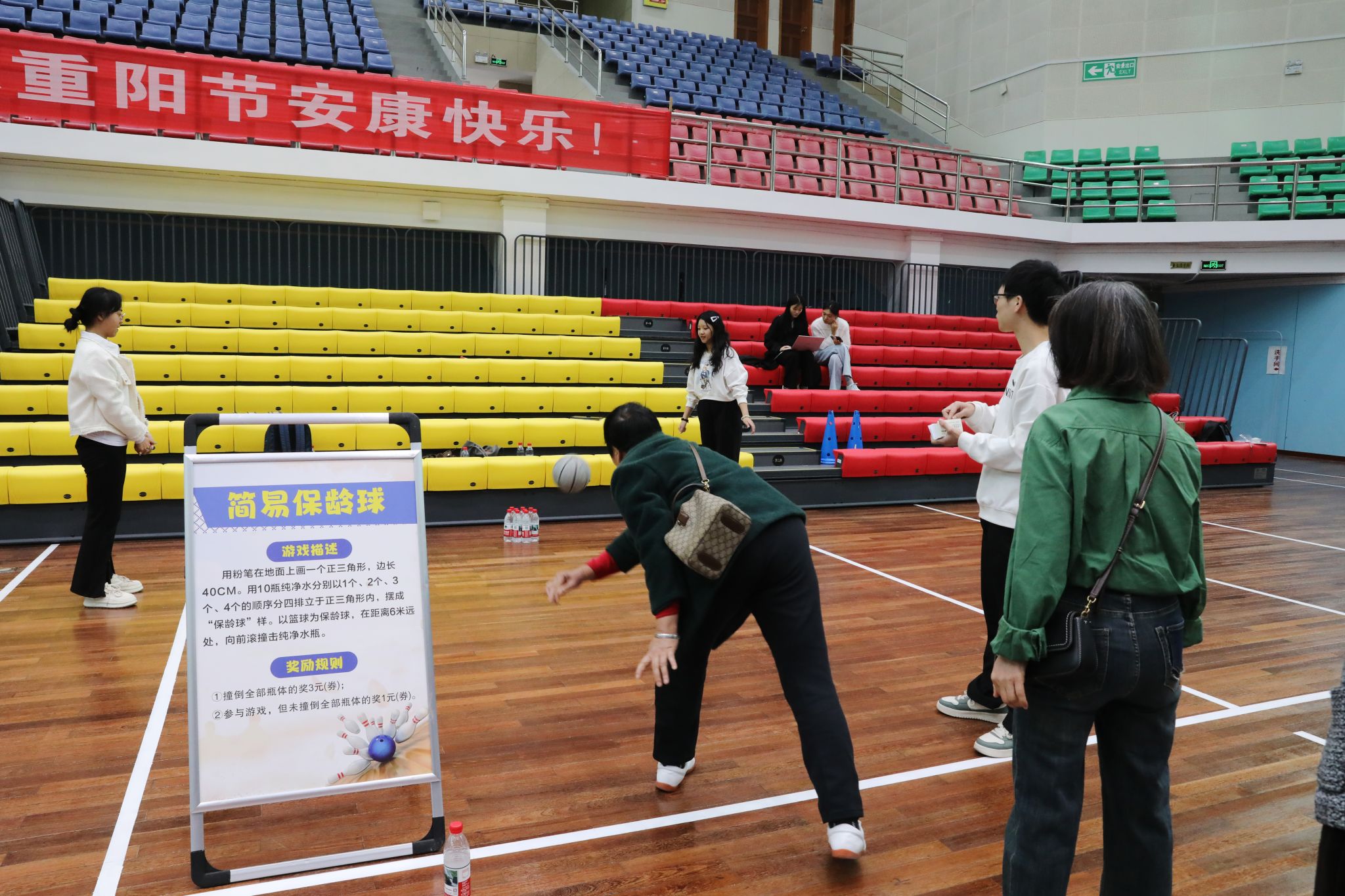 随后,李常健宣布“欢庆九九重阳节”游艺活动正式开始。本次活动精心设置了简易保龄球、筷夹乒乓球、投球进筐、蒙面敲锣、投掷飞镖等七个趣味游戏项目。老同志们精神矍铄、热情参与,在各个游戏区域流连忘返,活动现场欢声笑语此起彼伏。