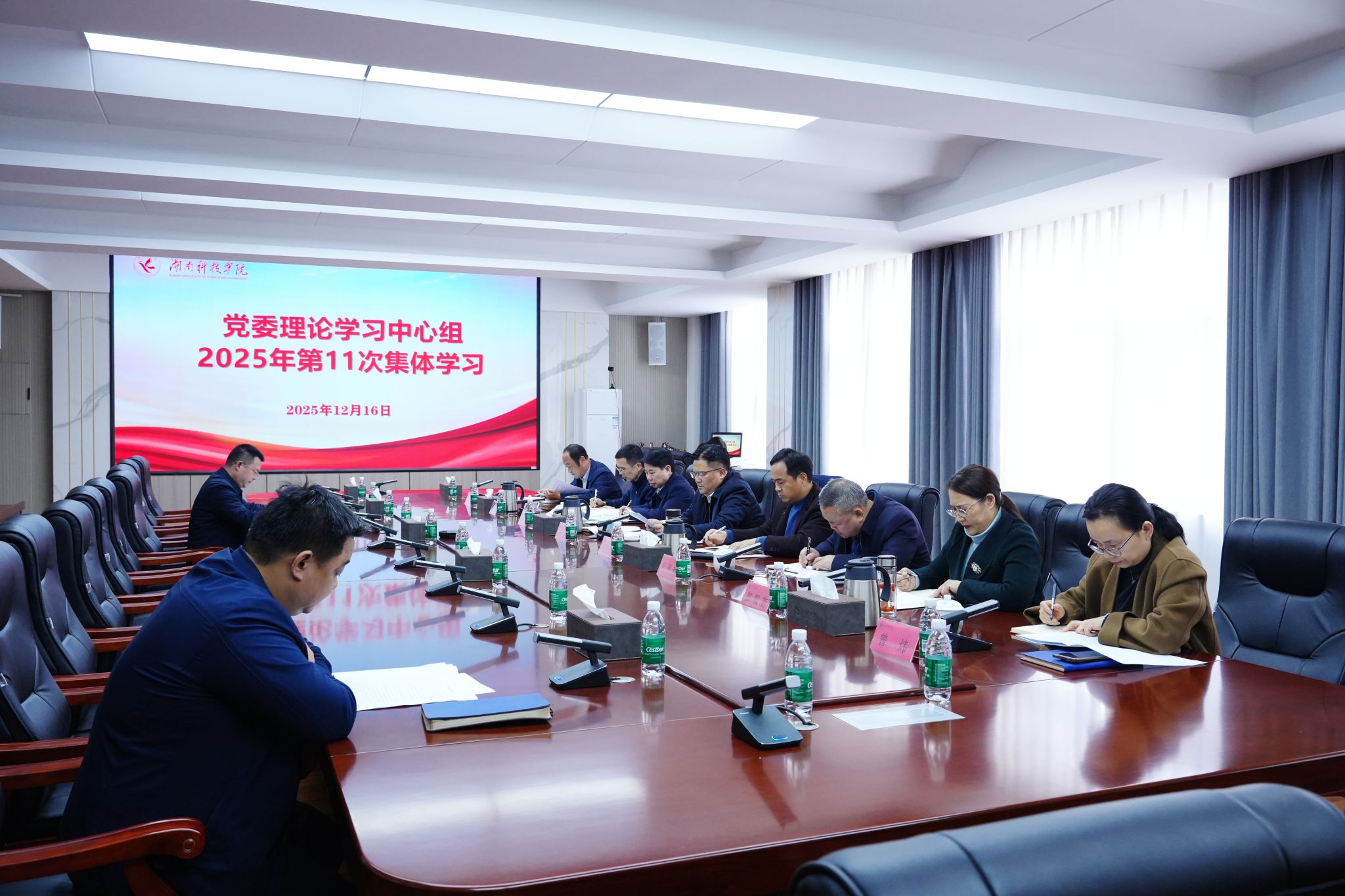 本网讯(记者 张云芳) 12月16日,学校党委理论学习中心组举行第11次集体学习,学习贯彻党的二十届四中全会精神、习近平经济思想以及习近平总书记关于总体国家安全观、安全生产、社会工作等重要论述精神。党委书记李钢主持会议并作总结讲话。