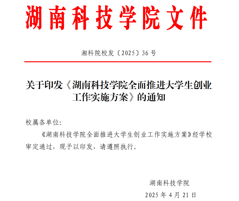 2025年,学校入选省支持大学生创业18所重点高校之一,“潇湘启航”大学生创业指导工作室被认定为2025年度湖南省大学生创业指导工作室,“永州创新创业一体化服务平台”获省发改委200万元专项支持。