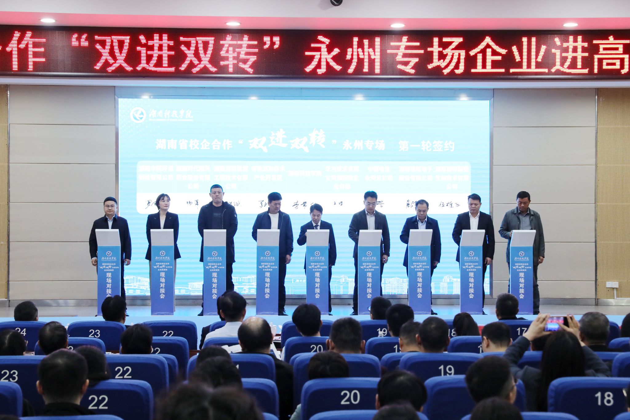 2025年10月,伟德举行湖南省校企合作“双进双转”企业进高校现场对接活动永州专场,与湖南中稀环保科技有限公司等16家企事业单位签订产学研合作协议。