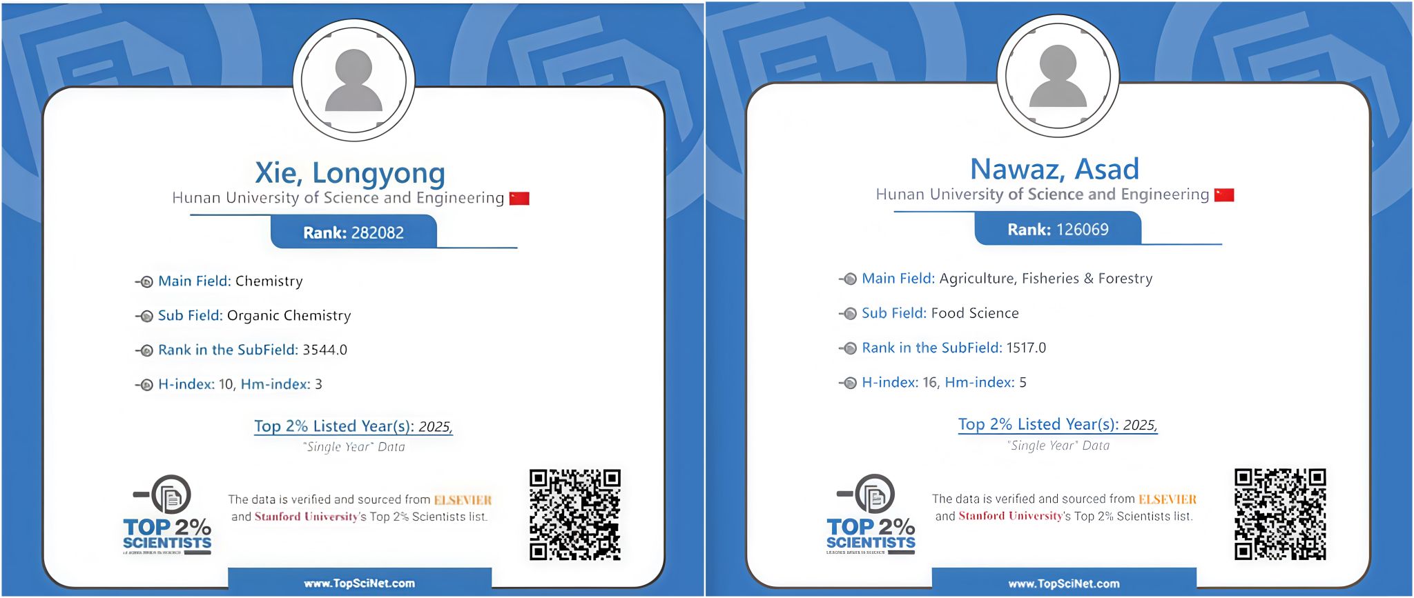 2025年9月,斯坦福大学与爱思唯尔(Elsevier)联合发布2025年“全球前2%顶尖科学家”榜单。伟德三位学者入选,其中黄创霞教授入选“终身科学影响力排行榜”,谢龙勇博士与Asad Nawaz博士入选“2025年度科学影响力排行榜”。