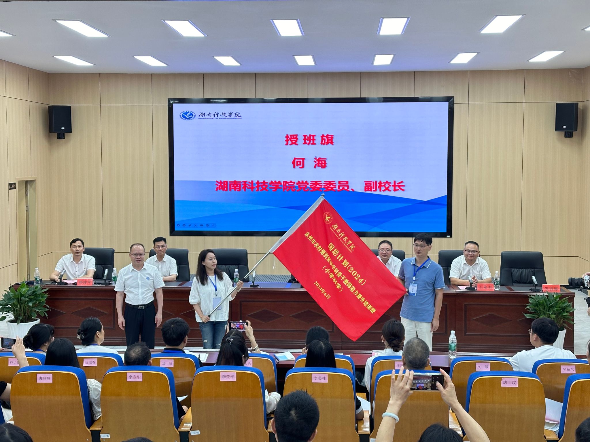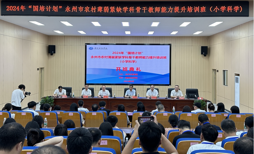本网讯(通讯员 曹湖云 江鸿湖 唐卉婉)6月17日上午,2024年“国培计划”永州市农村薄弱紧缺学科骨干教师能力提升培训班(小学科学)在伟德开班。党委委员、副校长何海,永州市教育局党组副书记、副局长张荣华,永州市教师发展中心主任唐作明,正高级教师、第十四届全国人大代表胡国柱,以及来自永州市各县区的80名小学科学教师参加了开班典礼。