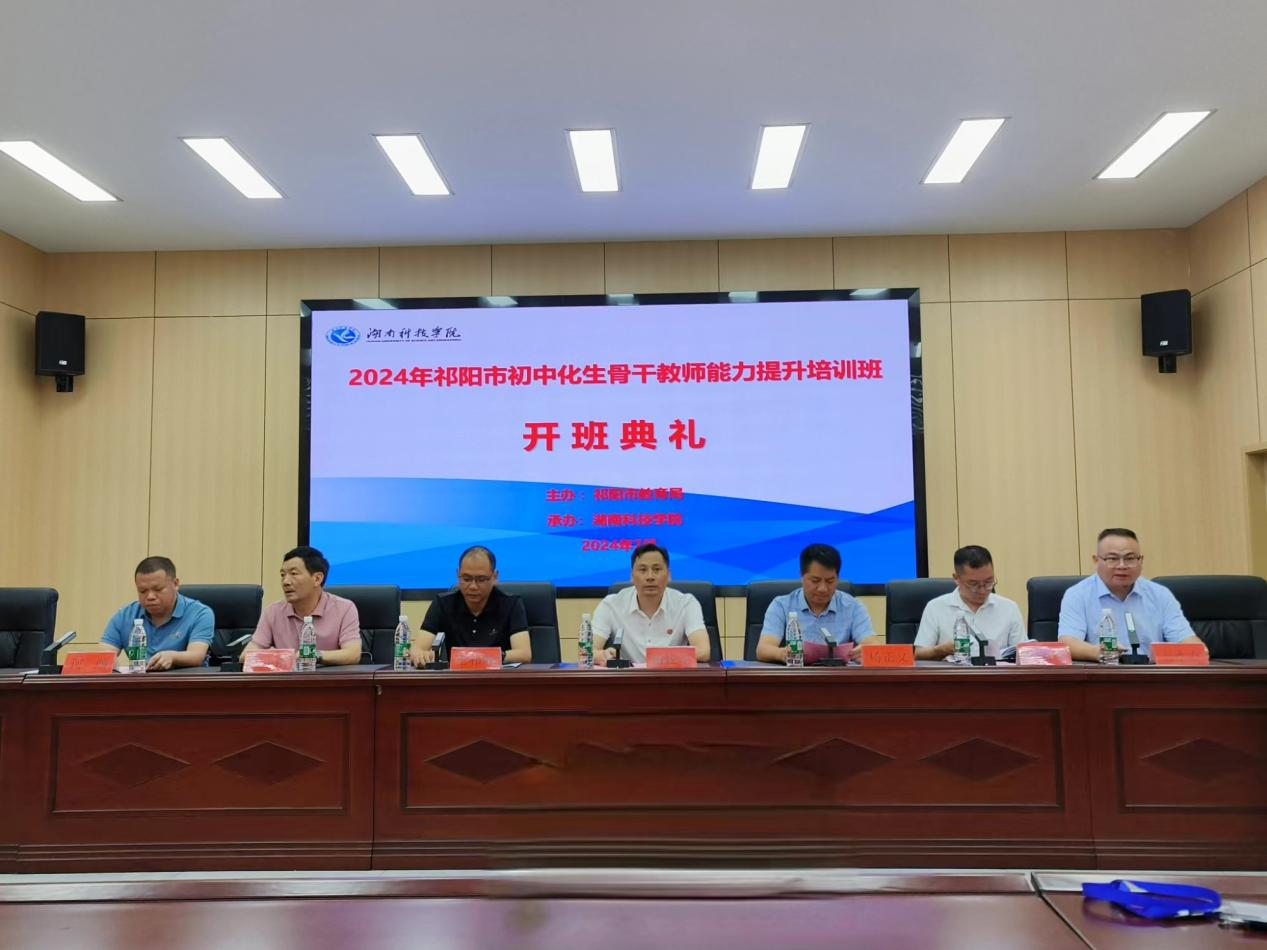 本网讯(通讯员 曹湖云 郭小聪 刘艳丹)7月9日,2024年祁阳市化生骨干教师能力提升培训班在伟德开班。祁阳市教育局党组副书记、副局长王祁峰,祁阳市教师发展中心主任杨正义,祁阳市教师进修学校校长邓小刚,祁阳市教师进修学校副校长董旭辉、何顺,伟德继续教育学院副院长杨建军、王永春,以及来自祁阳市的50余名初中化生骨干教师参加了开班典礼。
