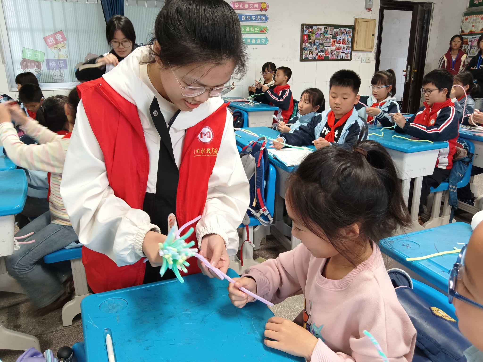 志愿者们还教授小学生们进行扭扭棒的手工制作,通过实际操作提升同学们动手创造和解决问题的能力,同学们纷纷写下对老师的感激,体现出教育的深远意义。