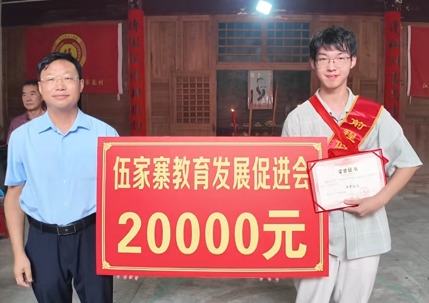 据悉,今年伍家寨村教育发展促进会共筹得各方捐款近9万元,重教兴村的氛围日益浓厚,村民捐款逐年增加。学子们奋发图强,高考捷报频传,今年考取研究生1人,本科9人、专科4人,其中伍家阳是全村第一个考上北京大学的学生,伍予曦考取西南大学,伍宇翔考取大连海事大学。