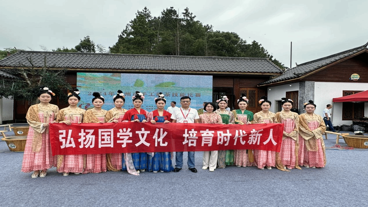 在大赛开幕式现场,旅游与文化产业学院学生和潇湘文旅研学社成员精彩演绎了唐代煎茶节目《潇湘茶韵 槐序雅集》。烤茶、碾茶、选炭、选水、煮茶、插花……节目还配以诗词的诵读,同学们把精湛的茶艺和对美的追求呈现在观众面前,赢得了现场的阵阵掌声。同学们还现场观摩了手工制茶技能比赛,深入学习了解了制茶过程中的翻炒、揉捻、作兴、提香等步骤,体验了茶文化的深厚魅力,感受到中华优秀传统文化的博大精深。