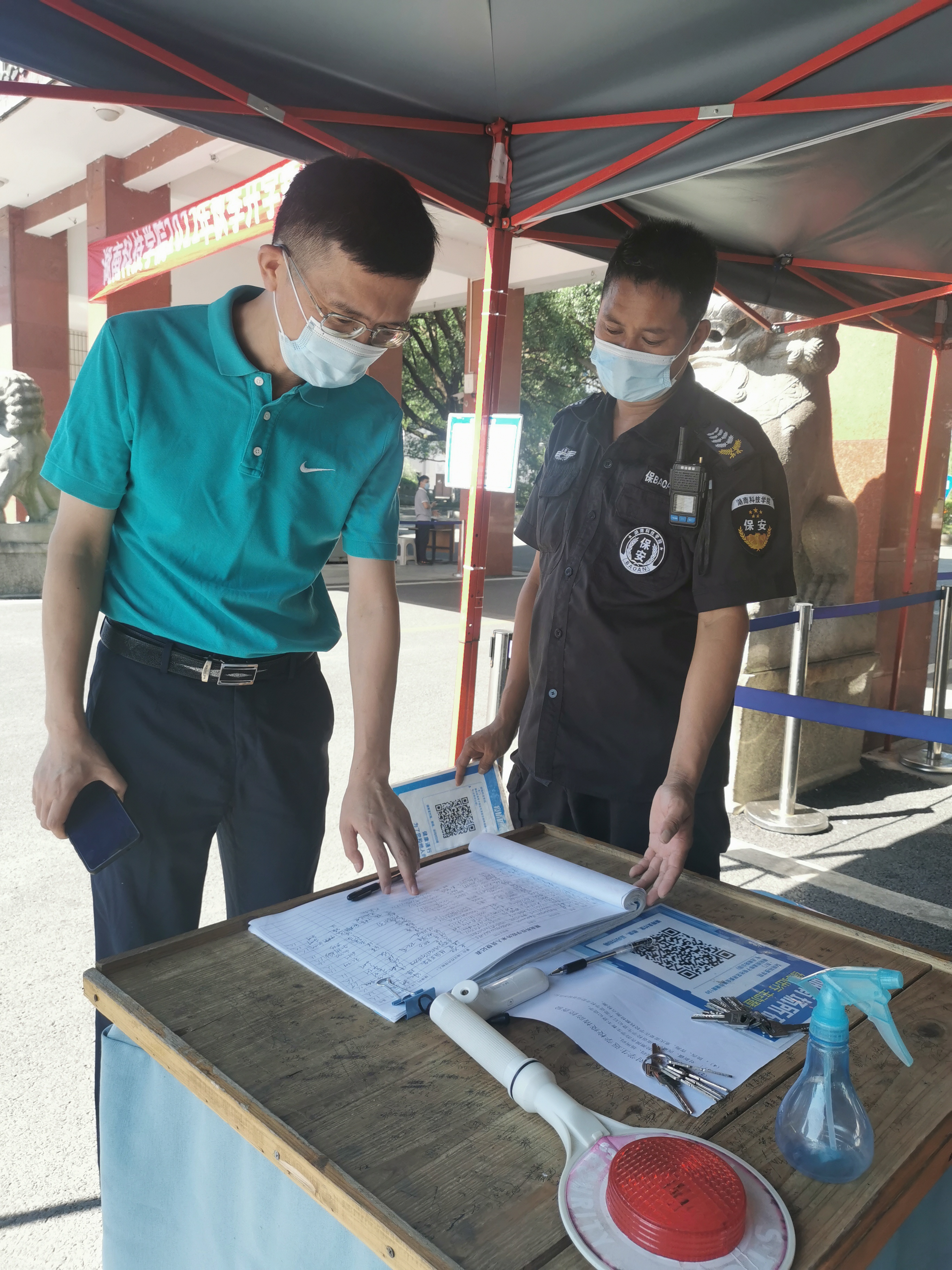 本网讯 8月28日,在校生返校报到,一大早,纪委书记陈灿军带队采取“四不两直”方式深入东校门、学生食堂等地对疫情防控工作开展暗访督查。