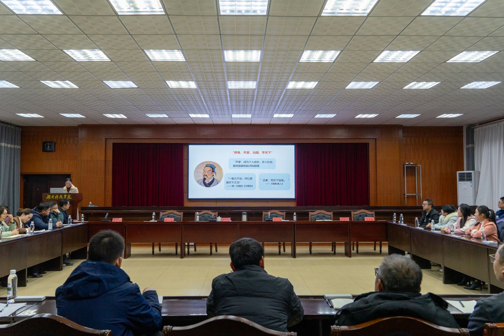 本网讯(通讯员 李井波 摄影 朱浩然)12月18日,学校举行“传承优良家风 涵养清朗校风”家风建设分享会,校党委委员、纪委书记陈灿军出席会议并讲话,校纪委委员、各职能部门负责人、各学院党总支书记、纪检委员及家属代表参加了会议。会议由纪委副书记、纪检监察处处长郑向晖主持。