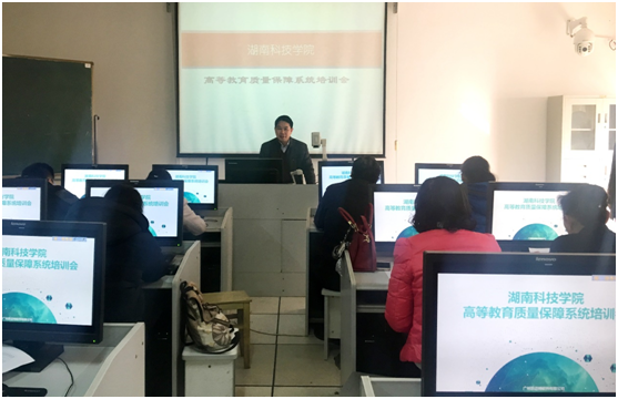 培训会议由质量管理处处长聂志成主持,各机关处室主要相关人员、各教学学院副院长和教务办主任参加。