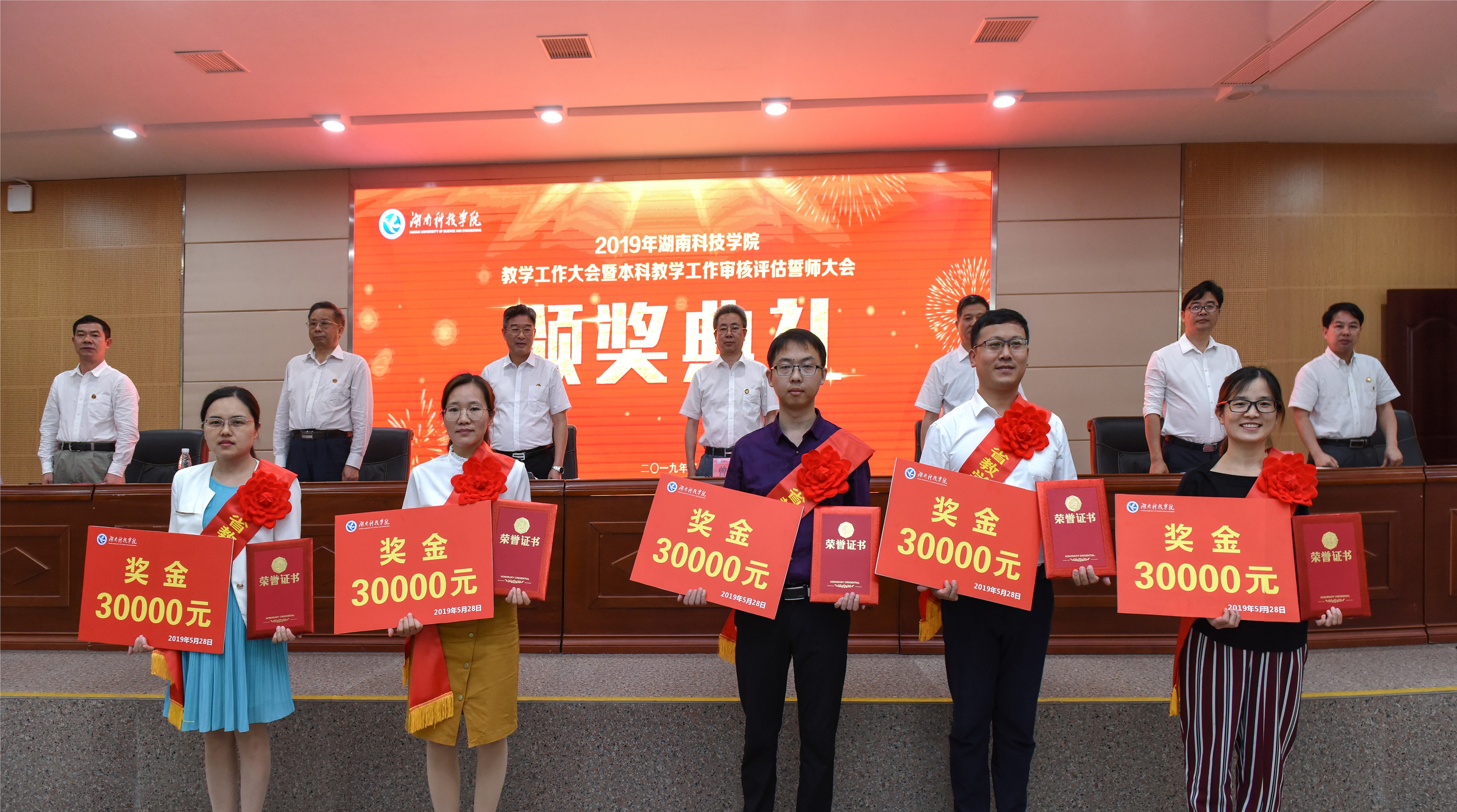 随后,副校长宋宏福宣读了受表彰教师名单:2016-2018年湖南省课堂教学竞赛一等奖获奖教师廖阳、黄雪梅、闫荣玲、游珍珍、李超、廖春艳、罗雄文、段华斌,2018年湖南省信息化教学竞赛一等奖获奖教师郭恩平,2016-2018年学生学科竞赛优秀指导老师夏炳梅等104人次。校领导为获表彰的先进教师代表颁奖。