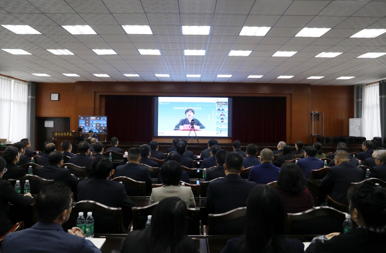 本网讯(记者 孙淑娴)10月31日,伟德在行政楼八楼一会议室召开本科教育教学审核评估启动会,会议采用线上线下相结合的方式进行。湖南省教育厅二级巡视员王红冰,专家组组长、江苏师范大学原副校长钱进、专家组全体成员出席会议,全体校领导、各职能部门主要负责人,二级学院院长、党总支书记,教务处、评估办全体成员参加会议。