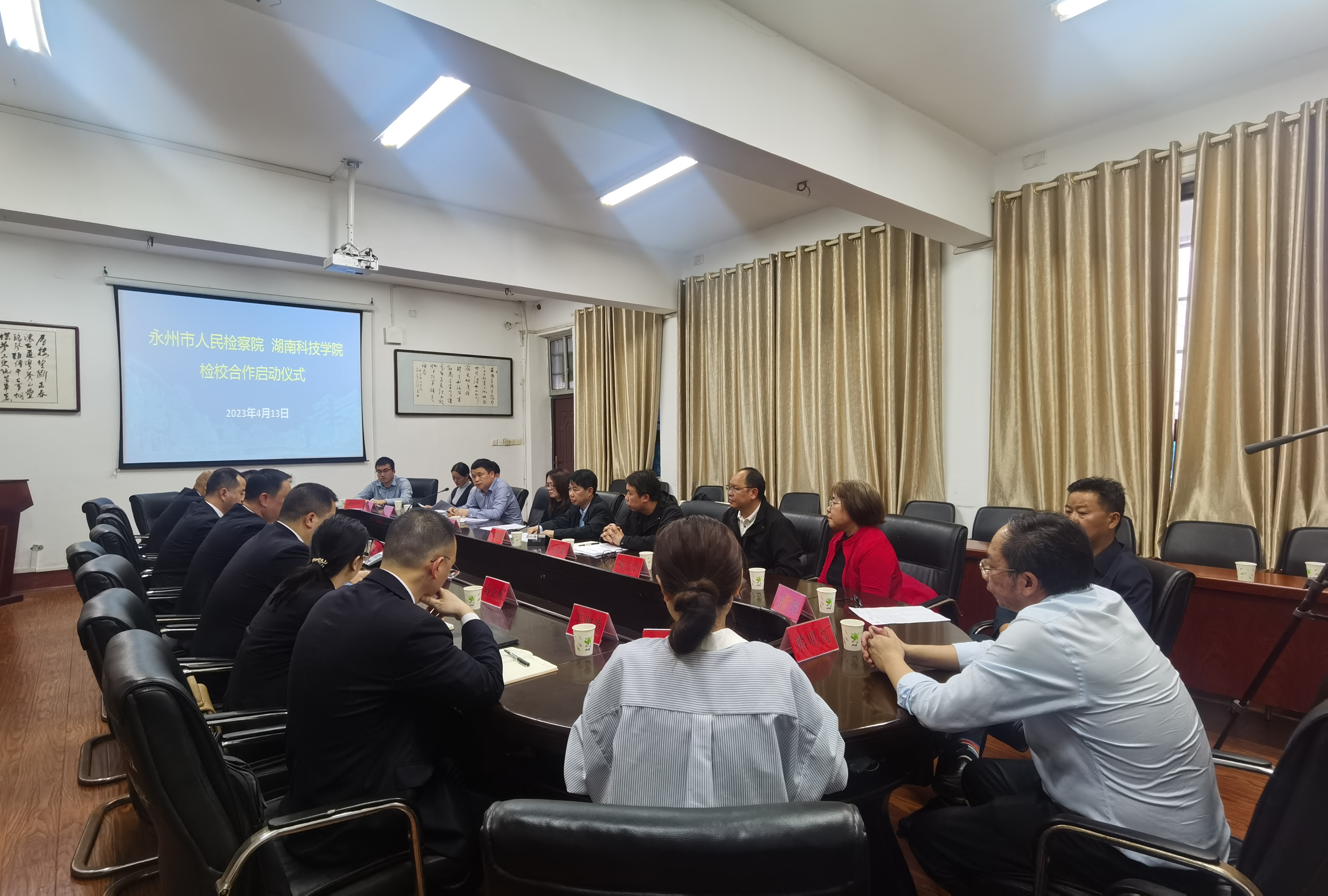 本网讯 4月13日下午,永州市人民检察院与伟德源自英国1946合作启动仪式举行。永州市人民检察院党组成员、副检察长周辉,党委委员、副校长李常健,教务处处长张剑等出席仪式。
