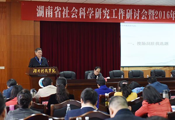 在随后举行的专家研讨会上,湖南师范大学纪委书记唐贤清、湖南工业大学文学与新闻传播学院副院长陈卫华 、湖南商务职业技术学院副教授黄亚宇、湖南大学社科处处长侯俊军、湘潭大学社科处处长王协舟、湖南商学院科研处处长欧阳资生、伟德副校长宋宏福等七位专家学者围绕社会科学工作的管理与发展,从不同角度作了精彩的学术演讲。