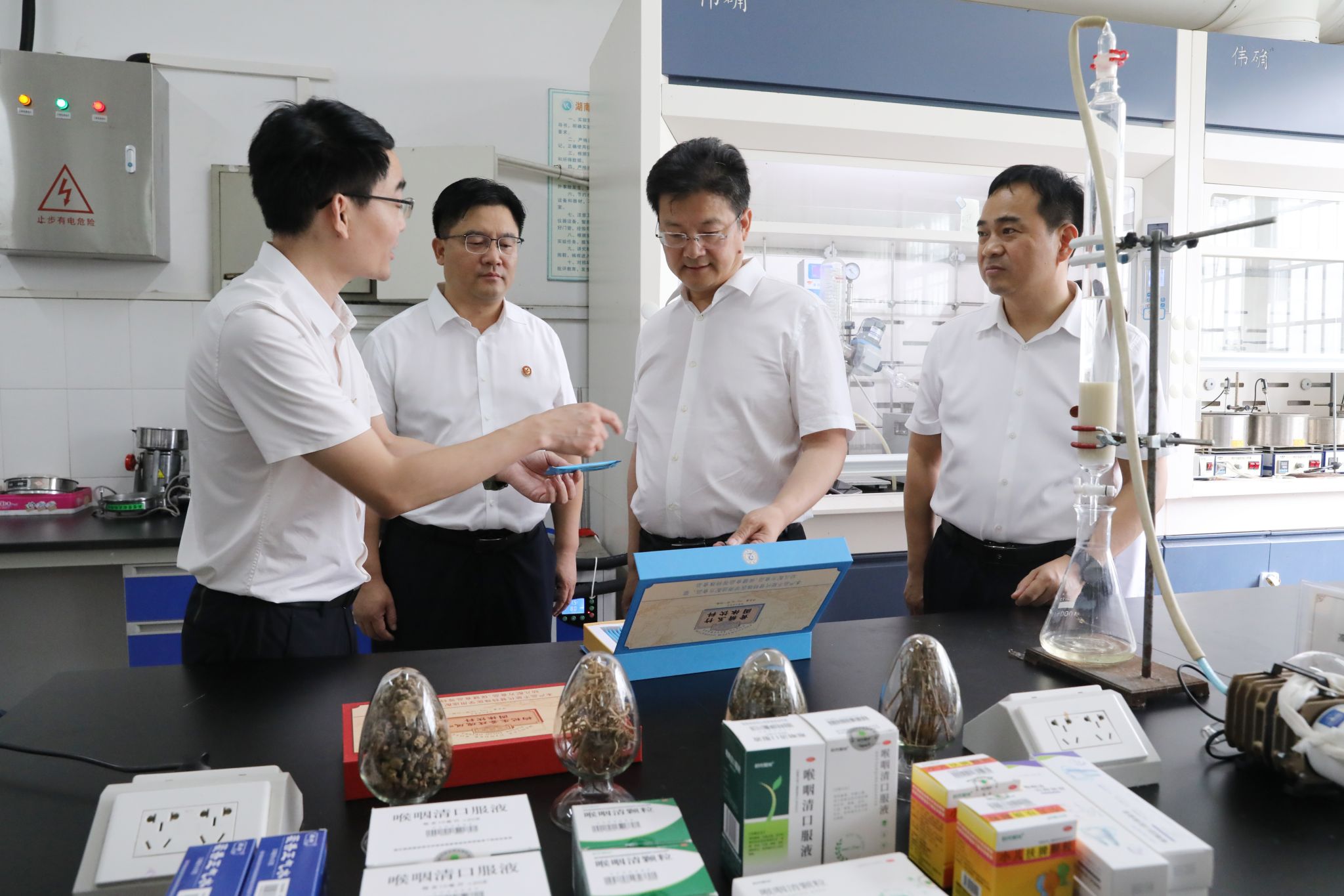 陈爱林一行来到伟德化学与生物工程学院,详细了解市十大科技创新项目——“中药大品种培育研究与应用”项目在产品研发、技术创新、转化推广等方面的进展情况。随后召开座谈交流会。陈爱林表示,科技创新是引领高质量发展的强劲动力。要深入开展“政校企”一体合作,支持具有核心竞争力的企业与伟德源自英国1946组建创新联合体,实现共建共享、合作共赢。要坚持企业创新主体地位,聚焦市场需求,引导企业加大研发投入,加强技术攻关,推动“科创链与产业链”融合发展。要精准精细服务企业发展,帮助企业解决实际困难,特别是要帮助专精特新企业提高创新能力,更好发挥引领作用。要大力推进十大科技创新项目建设,以科技创新引领产业创新,不断培育新动能塑造新优势,力争在打造具有核心竞争力的科技创新高地上发出更多永州声音。