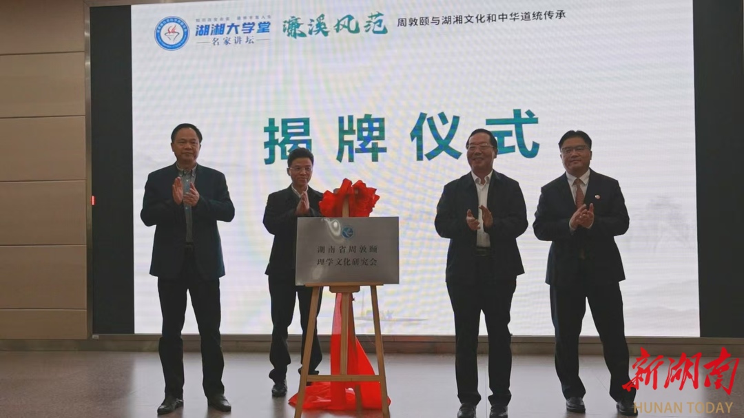 周敦颐是宋明理学的开山鼻祖、湖湘文化的重要源头,其创立的“濂溪理学”上承孔孟之道,下启程朱理学,在中华文明发展史上具有“破暗”的里程碑意义。湖南省周敦颐理学文化研究会的正式揭牌,标志着濂溪学研究迈向系统化、组织化、协同化的新阶段。未来研究会将立足湖南、联动全国、面向世界,整合学术资源,汇聚研究力量,致力于周敦颐思想的深度阐释、遗产保护、文化传播与国际交流,推动文化与旅游深度融合,协同打造具有全国影响力和国际知名度的周敦颐理学文化品牌。
