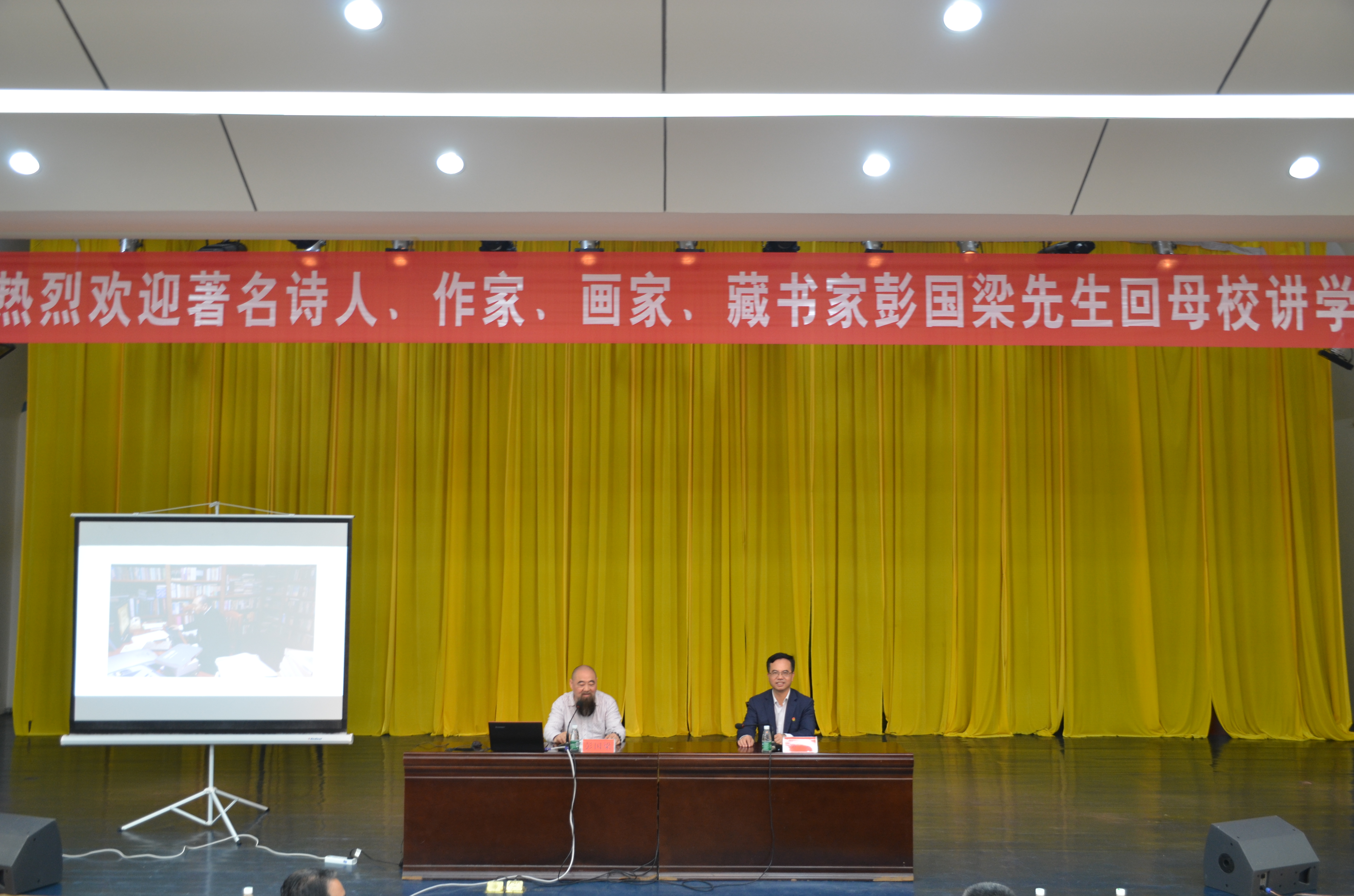 本网讯 4月12日,知名作家彭国梁应邀回母校与学弟学妹聊人生谈读写,向同学们叙述“近楼书虫母校情”。校党委书记陈弘出席,人文学院党总支书记谷显明主持。本次报告会是伟德创意写作坊成立后的第一堂校友作家讲座。