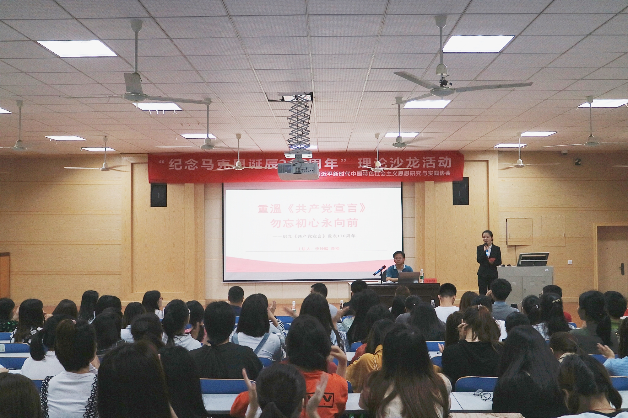 本网讯 6月1日晚,由马克思主义学院主办,习近平新时代中国特色社会主义思想研究与实践协会承办的“纪念马克思诞辰200周年”理论沙龙活动在学校致远楼701举行。马克思主义学院党总支书记唐森树、党总支副书记李观求及学院教师出席活动。全校各学院300余名同学积极参与本次活动。