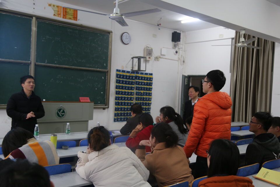 赖柏顺从自己研究的领域中选取部分关于四阶方程及椭圆的知识向同学们进行了细致讲解。针对老师及同学们提出自己的疑问,赖柏顺都详细的解答,现场学术氛围浓厚。他还结合自己的考研经历提出了考研注意事项和方略,叮嘱同学应当坚定目标、树立自信、脚踏实地、增强实力,以此决胜考研。