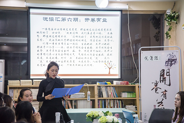 本网讯“读书之乐何处寻,数点梅花天地心。书是我们生活中的一大乐趣,只有让我们的灵魂融入书的海洋,让书的内容融入我们的生命,才能有一个比水更为广阔的心灵空间!”11月9日晚,一场以“开卷有益”为主题的第六期悦读汇在布克书店精彩呈现,十几名师生同台朗读经典作品,整个会场浓情四溢,愉悦温馨。