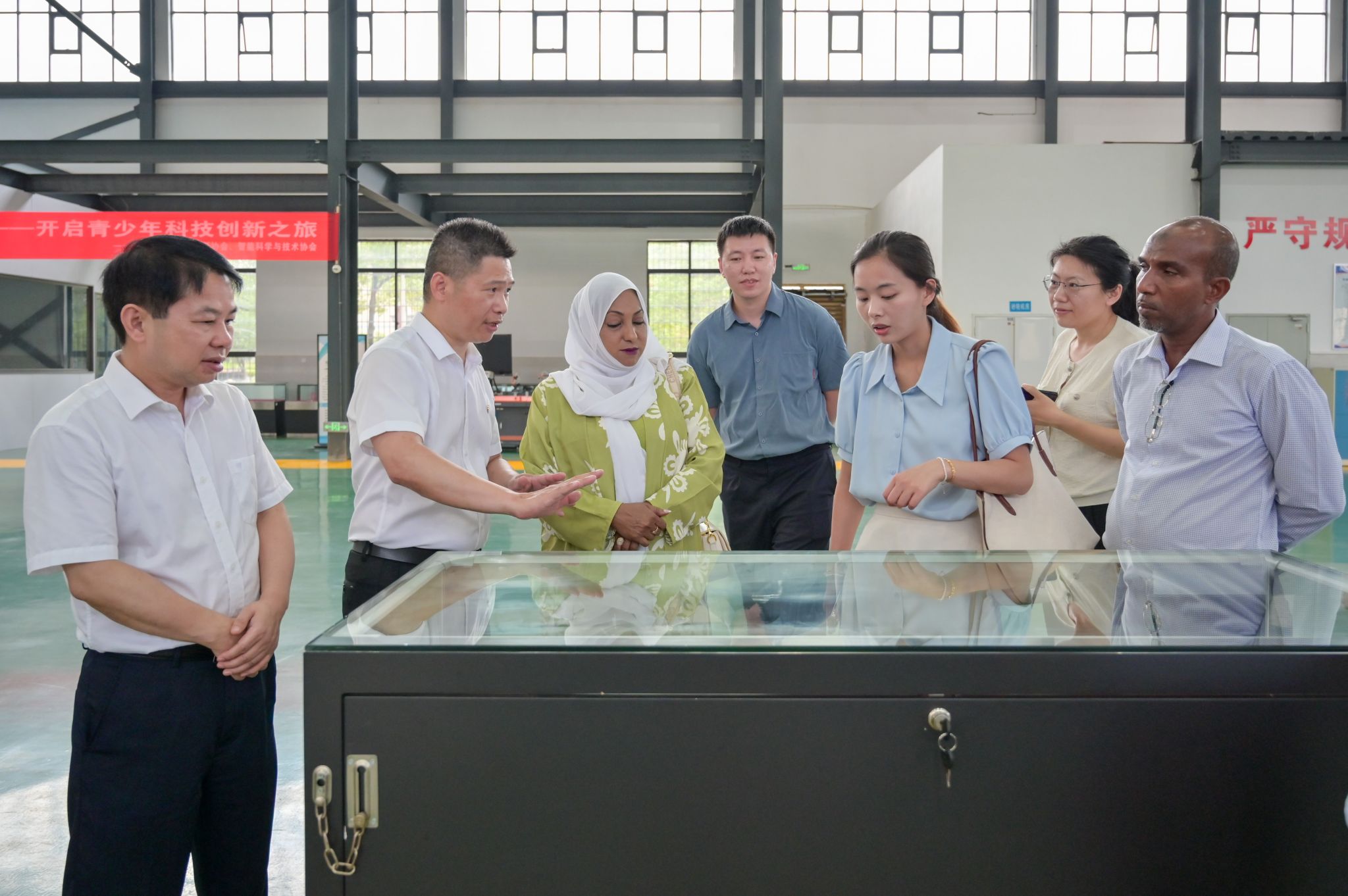 奥萨曼・哈马德・马哈茂德一行先后考察了学校工程训练中心、砖石质文物智慧化保护利用技术湖南省重点实验室、航空模拟仓和智汇科创中心。