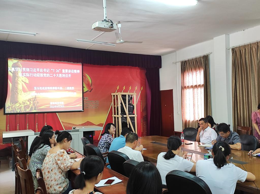 本网讯(记者 符小勇)9月28日上午,国务院政府特殊津贴专家、二级教授、湘潭大学韶峰学者、博士生导师曾天雄教授应邀来伟德马克思主义学院作题为《认真学习贯彻习近平总书记“7.26”重要讲话精神 以实际行动迎接党的二十大胜利召开》的专题辅导报告,并与伟德马院青年教师亲切交流。辅导报告会由马克思主义学院院长廖雅琴教授主持。