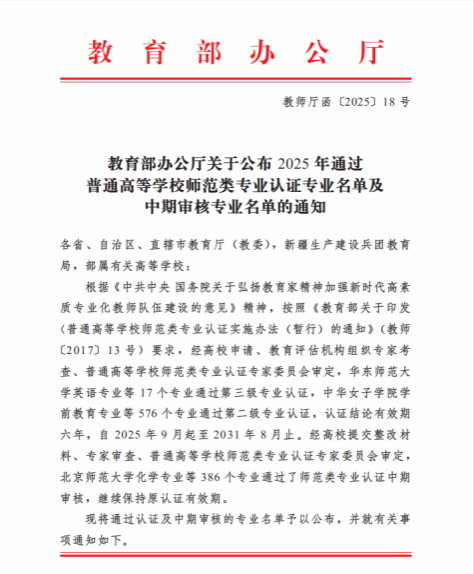 本网讯(记者 吴志伟)近日,教育部办公厅发布《关于公布2025年通过普通高等学校师范类专业认证专业名单及中期审核专业名单的通知》,我院思想政治教育专业成功通过普通高等学校师范类专业第二级认证。该专业同时成为伟德本年度通过此项认证的三个专业之一,标志着其师范类专业建设质量与人才培养水平获权威认可。
