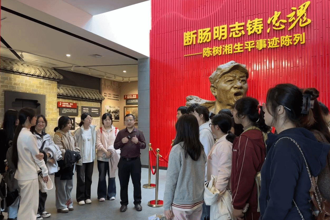 何宝珍故居:学“革命初心”,扬巾帼之志。青砖结构的何宝珍故居古朴典雅,正厅里的老照片与生平展板,勾勒出她从湘南少女到革命英烈的历程;西侧卧室的旧木床、书桌,书桌上的钢笔、笔记本,还原其生活场景;家书复印件上的娟秀字迹,字里行间满是对革命事业的坚定信念和对家人的牵挂。同学们纷纷表示:“何宝珍作为‘革命母亲’,在艰难困苦中始终坚守信仰、英勇斗争,她的初心与担当,激励着我们青年一代在新时代勇挑重担,用青春书写使命答卷。”