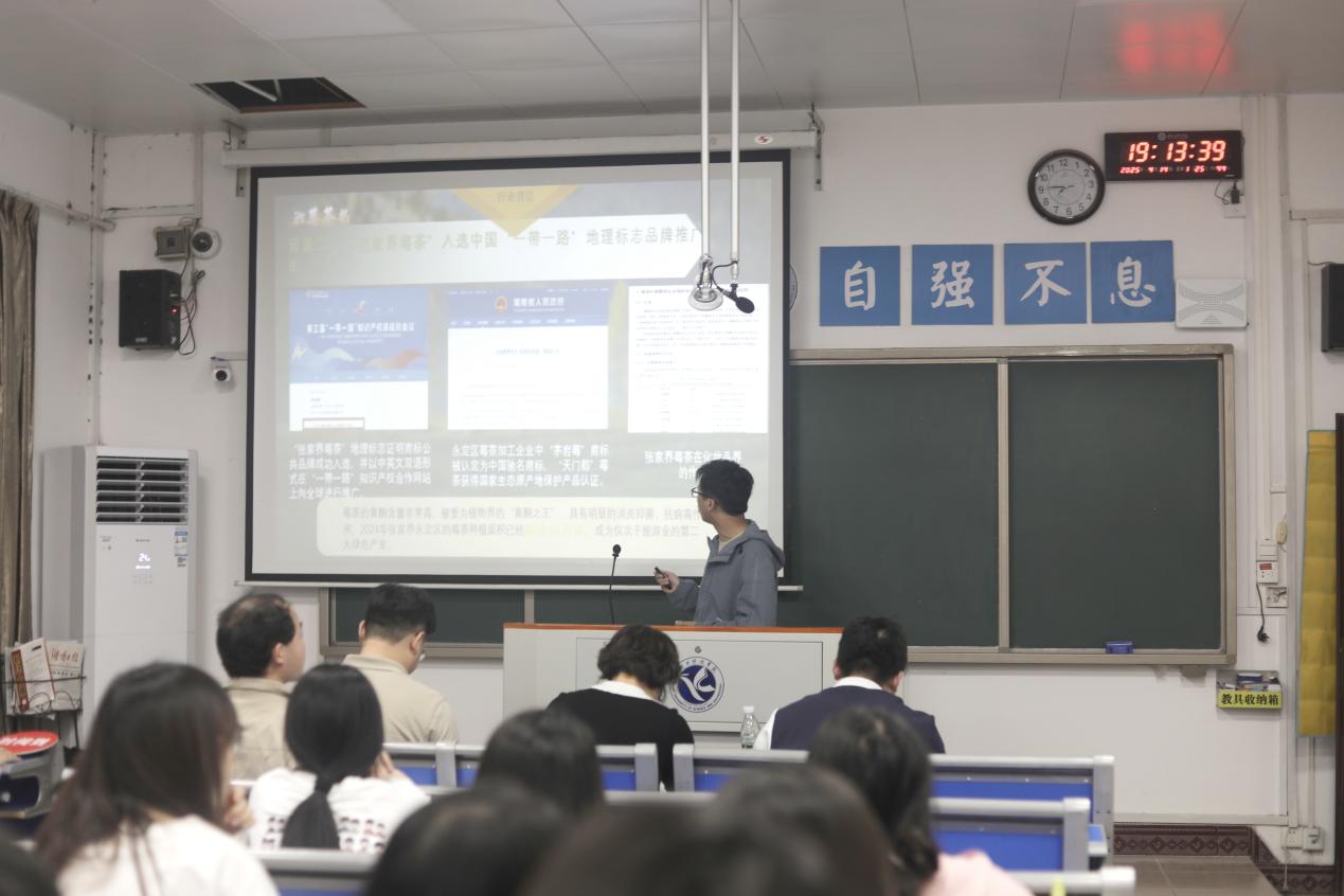 参赛项目各具特色,从本地农产品实体项目到文化创意、科技创新,展现出当代大学生对社会需求的敏锐洞察和解决问题的创新能力。“红旅密境”小组将红色文化与沉浸式体验相结合,开发出“剧本杀+党史研学”的创新模式;“‘码’上健身”小组则着眼于乡村体育发展,他们开发的微信小程序通过积分激励社交互动功能,有效提升农村居民的运动积极性。比赛现场,各参赛团队通过PPT演示、产品实物展示及现场答辩等环节,就项目概况、市场分析、商业模式、运行现状等进行汇报。