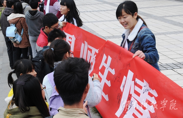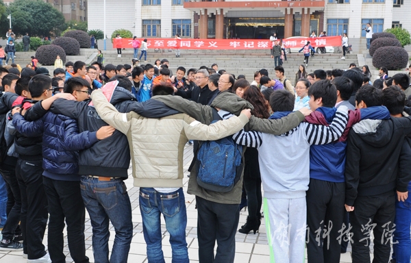 当天,围绕“不忘至爱同学义,牢记深恩师生情”的感恩主题,学校开展了“青春快闪”、“千人拥抱”、“手写感恩祝福”等一系列活动。校园师生纷纷跳起青春跃动的兔子舞,互相热情拥抱,在横幅上签名留言,并领取感恩祝福卡,寄语感恩之情,给寒冷的冬季带来了浓浓的暖意,使校园洋溢着温馨、感恩、友爱、和谐的氛围,青年老师李超说,“当我和同学们紧紧拥抱时,我的心彻底被温暖了,在冬日里感觉到了春天般的温暖”。校党委副书记唐艳明教授告诉记者,“通过感恩主题系列活动,传递了和睦友爱、感恩师友之情,强化了知恩、感恩意识,发扬了中华传统美德”。