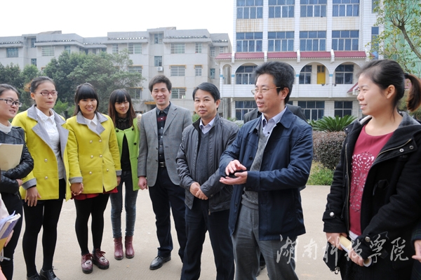 本网讯(教务处 供稿 摄影 何帅文)11月19日,校长曾宝成率教务处处长李常健及教务处相关人员前往宁远一中、宁远二中、宁远三中检查教育实习工作,慰问、指导外语系116名实习师生,并将“教育部普通高等学校‘本科教学工程’大学生校外实践教育基地” 匾牌正式授予宁远一中。