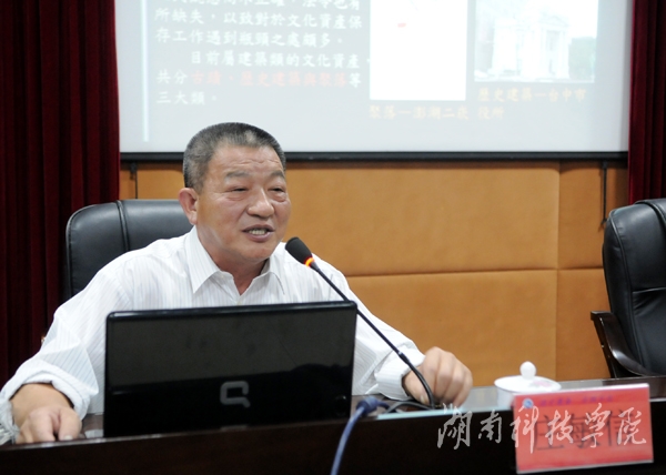 30日晚,庄敏信教授综合信息楼八楼会议室为师生主讲了题为“古建筑赏析暨文物保护”的讲座。庄敏信教授就古建筑的主要类型和保护的基本原则进行了详细阐述,并说明了珍视和保护古建筑的重要性。随后,庄敏信教授详细介绍了台湾古建筑的历史及其发展过程,庄敏信教授对传统建筑中常见的建筑如宫殿、坛庙、寺观、佛塔、民居和园林建筑等作了详细介绍,并配以图片进行解说,以帮助大家更加直观、具体地了解中国传统建筑的各个方面。庄敏信教授说,建筑是文化发展的高度集中体现,我们不能片面的把视觉停留在建筑的表面装饰图案上,建筑的内在结构美更需要去探究。庄敏信教授以富有感染力的语言,让在座师生深刻地领略到了古建筑的内涵与魅力。