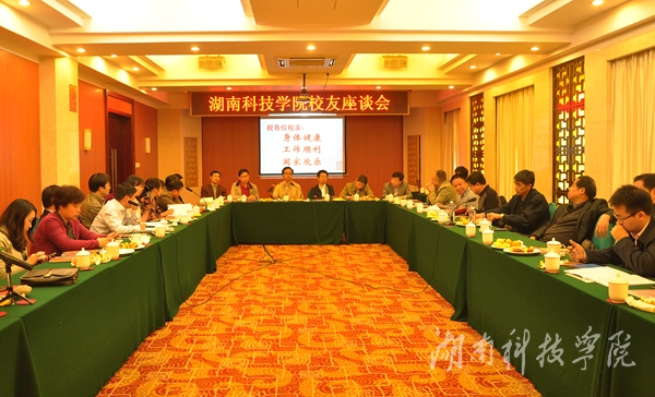 座谈会上,氛围温馨热烈,校友们追忆潇水河畔似水年华,共话师生情谊,共图发展大计。他们深情回顾了在校期间的学习生活历程,感恩母校的教育培养,并为母校的进一步发展积极建言献策。“在生命长河中,能在科技学院工作,为之发展建设做点儿事情是件光荣而自豪的事情,能为学校建设发展献计献策,贡献自己的力量、智慧和能力是情之所至,义不容辞,”原伟德党委书记陈建民同志动情地说道。“母校之情如桑梓之情铭刻于心,”生化系90级校友王景建议母校提炼并传承优良传统。校友们还就学科建设、人才培养、校企合作以及校友与母校的合作交流等方面提出了自己的建议:坚持依规立据、依法治校;发展优势、突出特色;健全校友会长效工作机制。“感谢母校,培养我们,关心我们。今天这么多领导来长沙看望校友,使我们仿佛回到了母校和求学年代。关于母校的发展,力所能及的事,必将倾心尽力,鞠躬尽瘁,”数学系78级校友潘东饱含深情地发言。座谈会持续了两个多小时,校友发言寄托了对母校无限情思和良好祝愿。他们表示将继续支持母校的发展,贡献自己的力量,同时对校友会的工作进行了充分肯定,对其建立的加强校友与校友,校友与母校联系的各类平台表示衷心感谢。