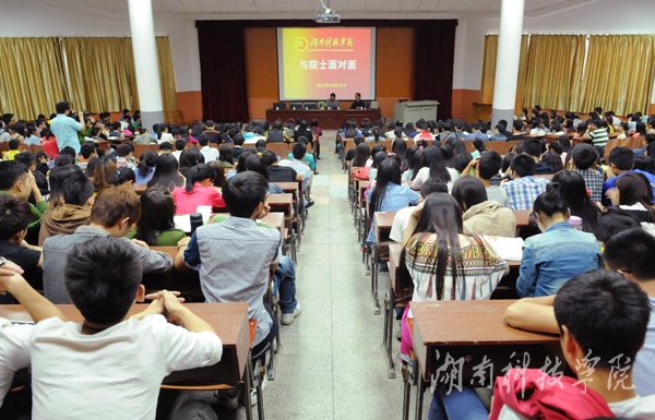 现场,欧阳晓平院士用一段简单平实但直抵人心的语言进行了自我介绍,“不一样的思维的方式,必然会看到不一样的景象。”欧阳院士结合自己的亲身经历语重心长地告诉同学们:要真正拥有真才实学,既要想学习,还要会学习,更要勤学习,要持之以恒地坚持学习,更要有目标有方向地去学习。