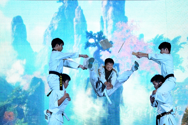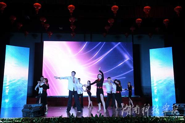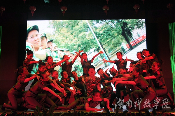 音乐系交响管乐团带来的《匈牙利舞曲》、《加勒比海盗》和《拉德斯基进行曲》以庞大的的阵容,深沉低婉的乐声迅速点燃了全场的热情。伴随着 “无论天长地久,海角天边,潇湘总是我们永恒的眷恋”的歌声,慷慨激昂的校歌《潇湘之歌》激情唱响。来自音乐系的舞蹈《嗨,我的大学》旋律悠扬,色彩斑斓,身着军训服的2014级大一新生给我们传递了他们对大学的喜爱与向往。由美术系带来的活力四射舞蹈《阳光男生女生》展现了当代大学生的共同特质——“青春,阳光”,现场欢呼声,掌声此起彼伏,汇成欢乐的乐章。2013年“科院好声音”获奖师生带来的歌曲联唱《勇敢的心》,唯美悦耳、宛转悠扬,为大家奉上了精彩的视听盛宴,使现场的气氛更加热情火爆。拉丁舞《魅影》以其动感的旋律,曼妙的舞姿让观众眼前一亮,引来观众的阵阵掌声。跆拳道协会则以后旋踢,抗击打等跆拳道动作,高空踢断木板等方式向同学们展示了跆拳道的威风。“我要一步一步往上爬,在最高点撑着夜往前飞,小小的天有大大的梦想,总有一天我要属于我的天”歌舞《再见,蜗牛》展示了当代大学生为梦想不断努力,向上的风采,引起了台下学生的强烈共鸣。由学工部选送的小品《地灵人杰育英才》融入现在流行的“穿越”的手法,让同学们在欢声笑语中了解学校的美丽。街舞《舞动的心》、肚皮舞《肚皮弗朗明戈》以及《传说中的武术》都博得了在场观众的阵阵掌声和欢呼。