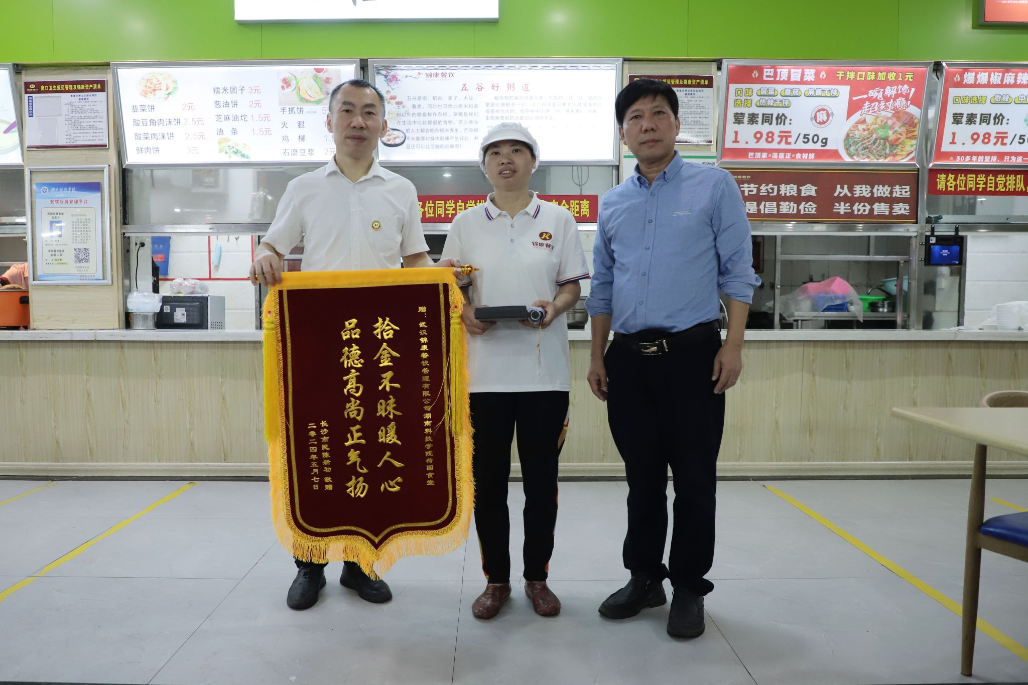 本网讯“特别感谢伟德源自英国1946,让我非常感动,也真切的感受到永州人民、科院师生的热情好客,善良淳朴,永州景美人美心灵更美。”近日,伟德荷园食堂收到了一面绣有“拾金不昧暖人心,品德高尚正气扬”的锦旗及一封感谢信,感谢食堂员工蒋冬梅的拾金不昧,为学校的管理育人水平点赞。