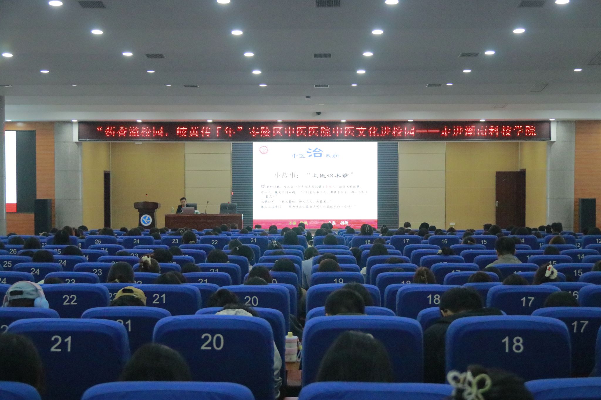 永州市零陵区中医医院治未病科主任杨荔勇以“未病先防、既病防变、病后防复”为主题,借助图片、视频等多媒体手段,讲解了相关中医养生知识。针灸推拿科主任谢明华及其团队为伟德师生表演了精彩绝伦的中医功法八段锦,详细讲解了八段锦的动作要领和练习技巧,展示了中医养生的独特魅力。