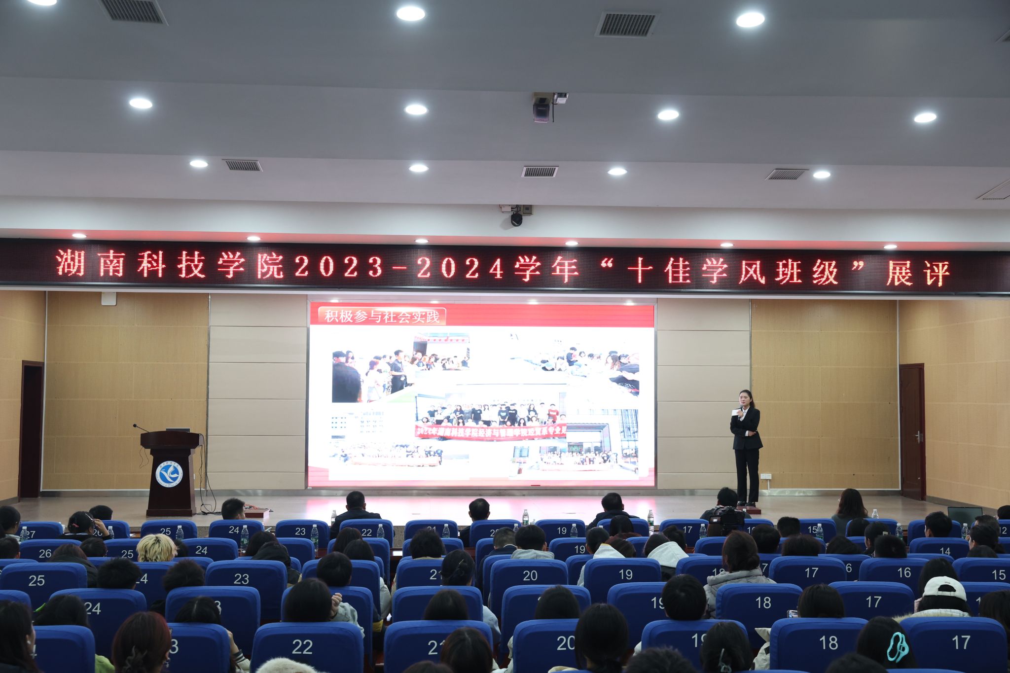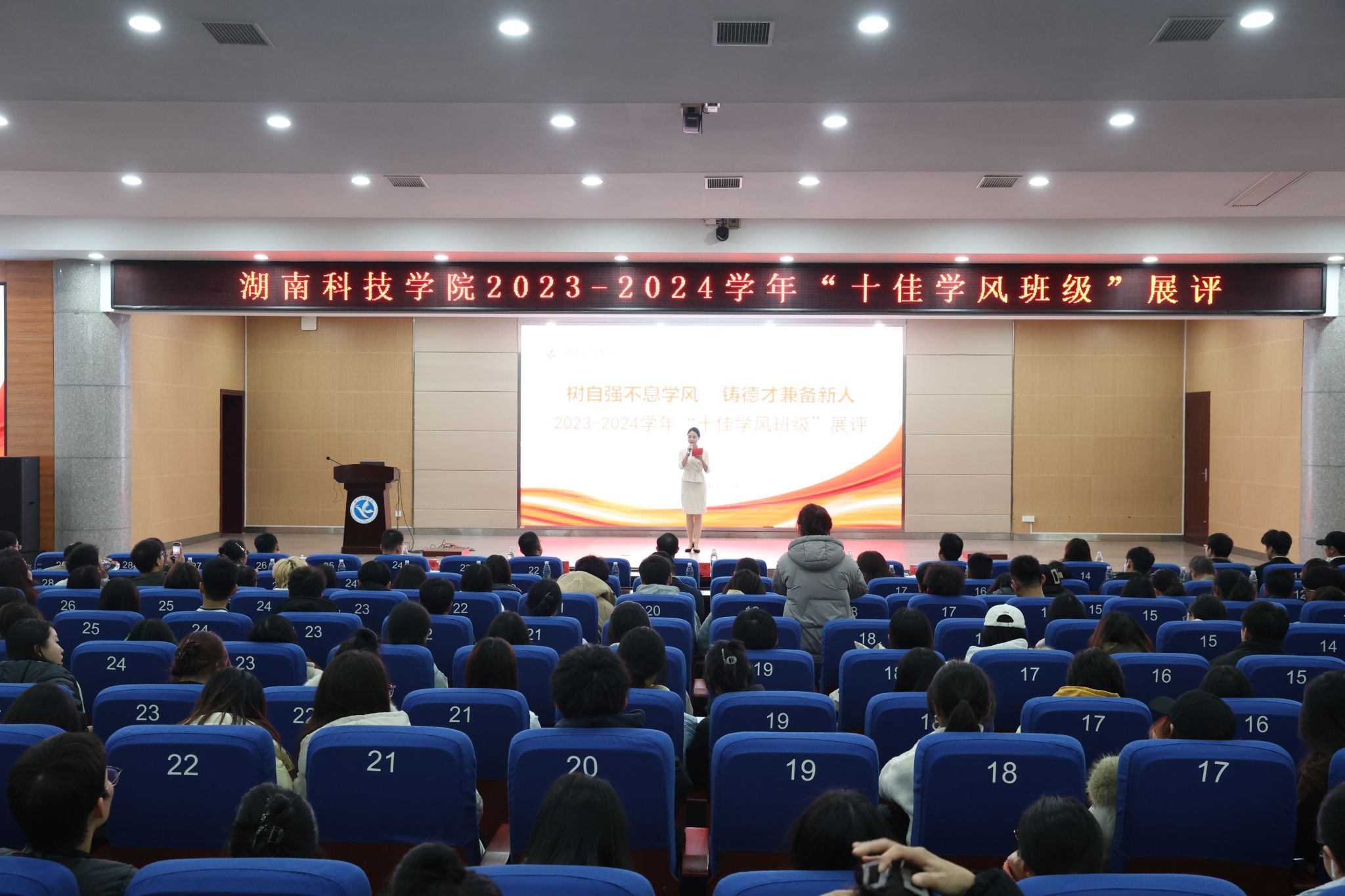 本网讯(通讯员 吕文青)为进一步加强学风建设,通过选树优秀学风班级,充分发挥榜样引领作用,带动全校学风进一步提升,12月5日晚,伟德2023-2024学年“十佳学风班级”展评活动在潇湘大讲堂举行。校党委委员、副校长吴小林出席活动,宣传统战部、学生工作部、发展规划与学科建设处、后勤服务中心、教务处、教学质量管理处负责人参加活动并担任评委。