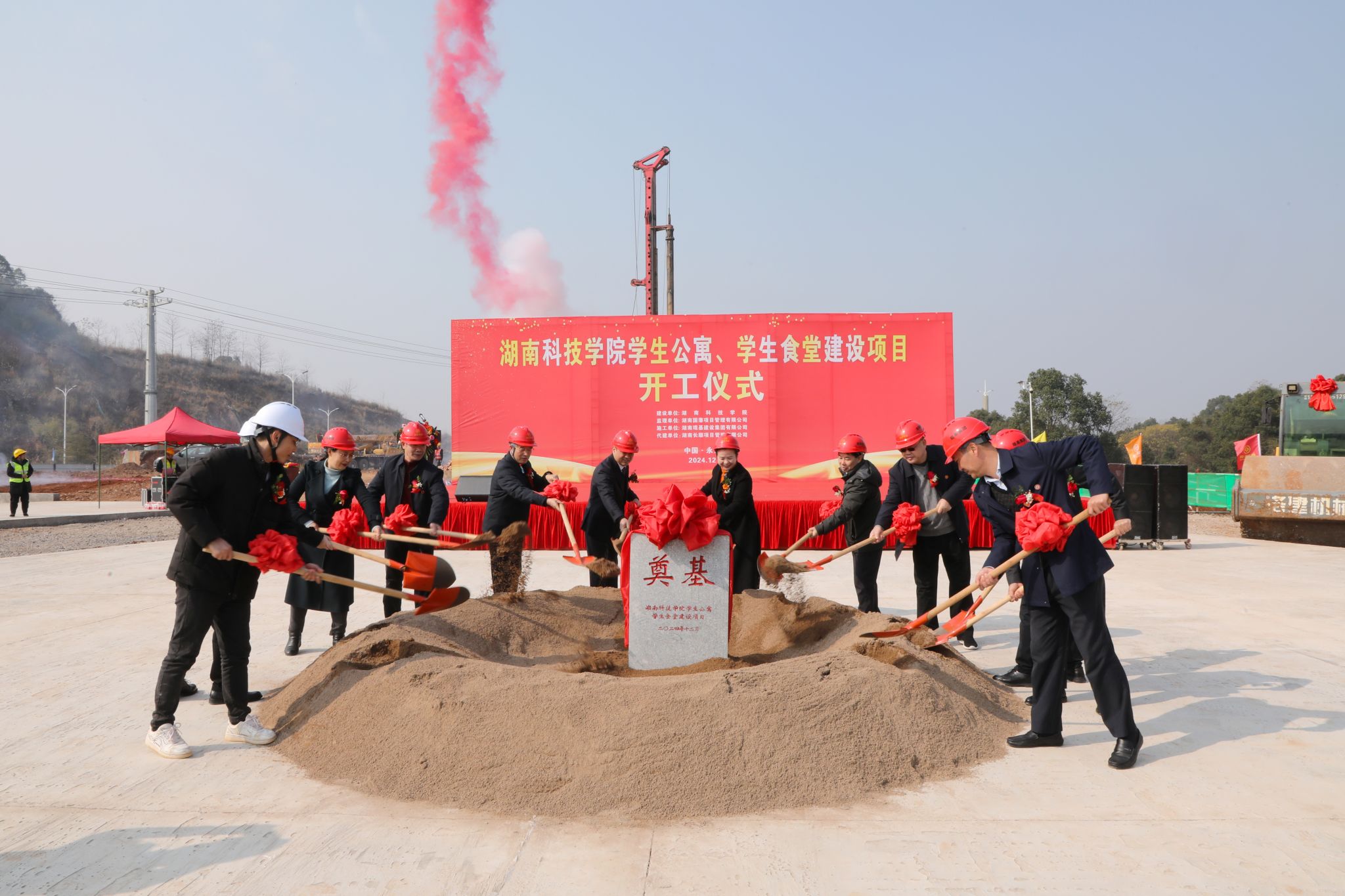 本网讯(记者 向薛峰 谢志豪)12月28日上午,伟德举行新建学生公寓及食堂项目开工仪式,零陵区副区长秦明明,党委副书记、校长黄创霞及全体在家校领导、党委委员等领导出席仪式,仪式由校党委副书记宋宏福主持。