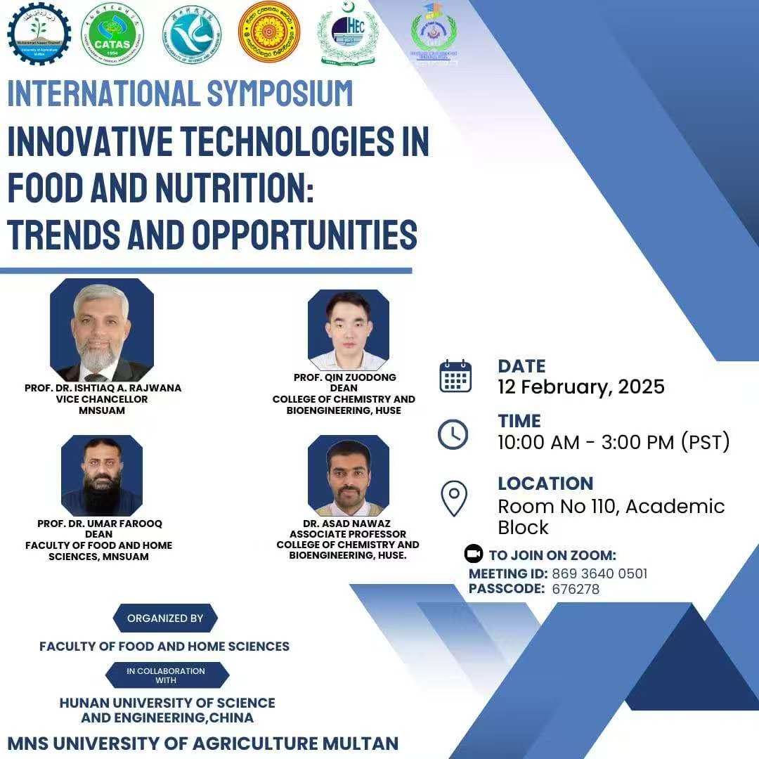 本网讯(通讯员 汪美凤)2月12日,由巴基斯坦Muhammad Nawaz Shareef University of Agriculture联合伟德组织发起的“Innovative Technologies in Food and Nutrition: Trends and opportunities”(食品与营养创新技术:趋势与机遇)国际研讨会在巴基斯坦木尔坦以线上线下相结合的方式成功召开。来自巴基斯坦、中国、斯里兰卡等国家和地区的百余名专家学者出席了本次研讨会,共同探索食品营养的最新技术与未来发展趋势。
