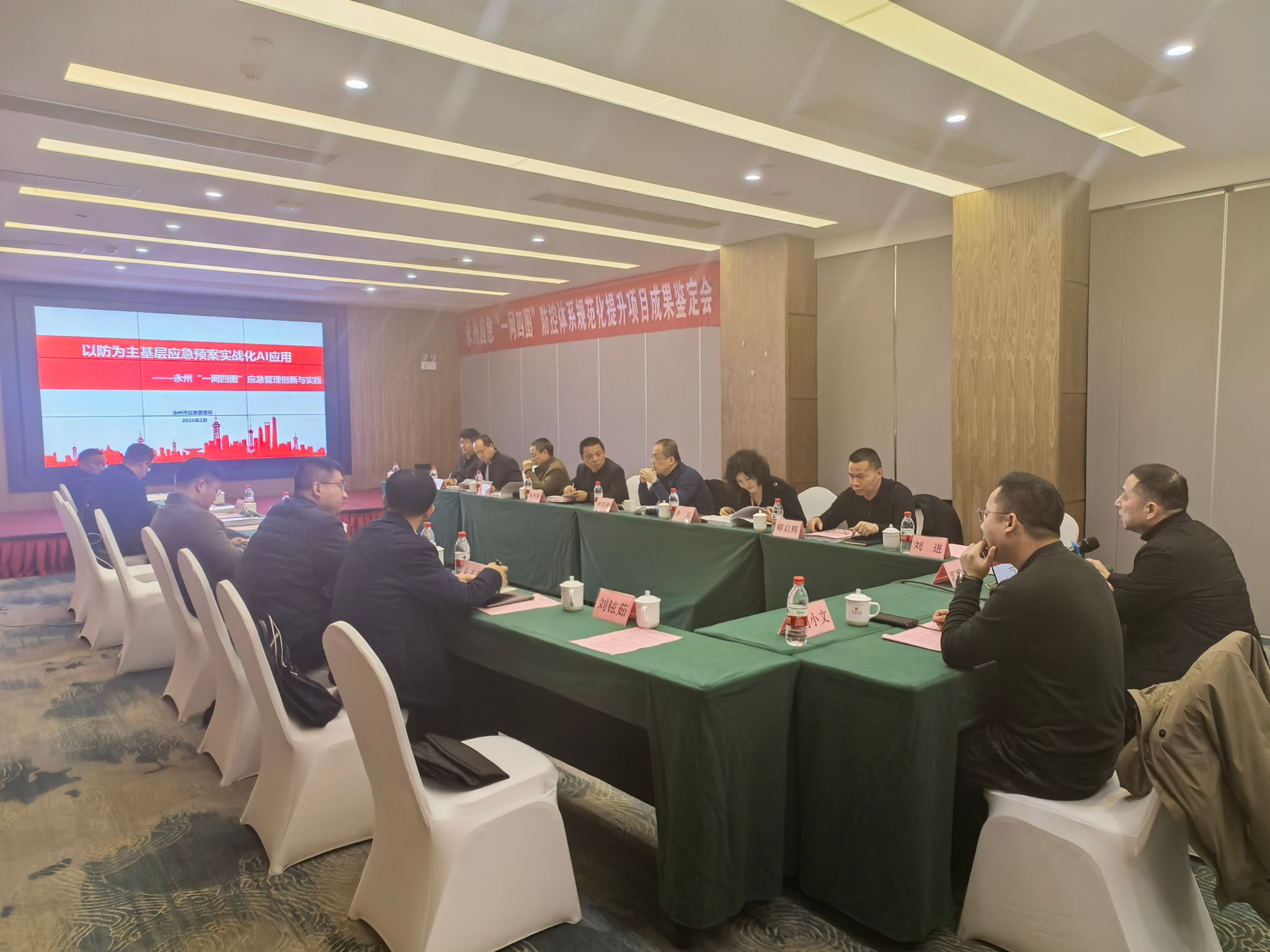 会上,永州市应急管理局党委书记、局长吴朝亮生动展示了自然灾害领域、应急直管行业、综合监管行业等的应急预案实战化AI应用。经济与管理学院院长周芳检教授详细汇报了"一网四图"应急指挥与综合防控体系建设情况,并着重阐释了AI应用于自然灾害与事故灾难防范与应对的具体措施。