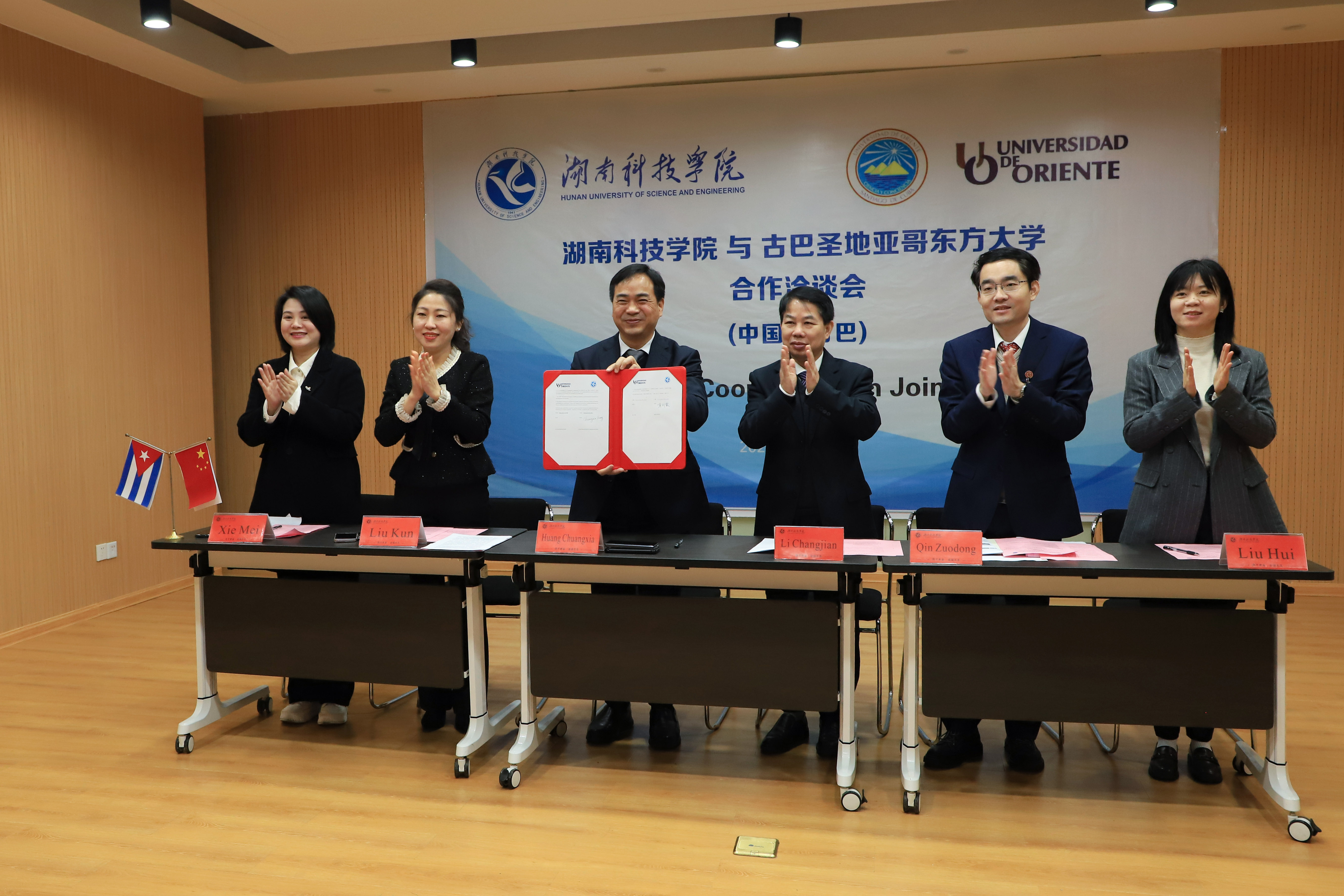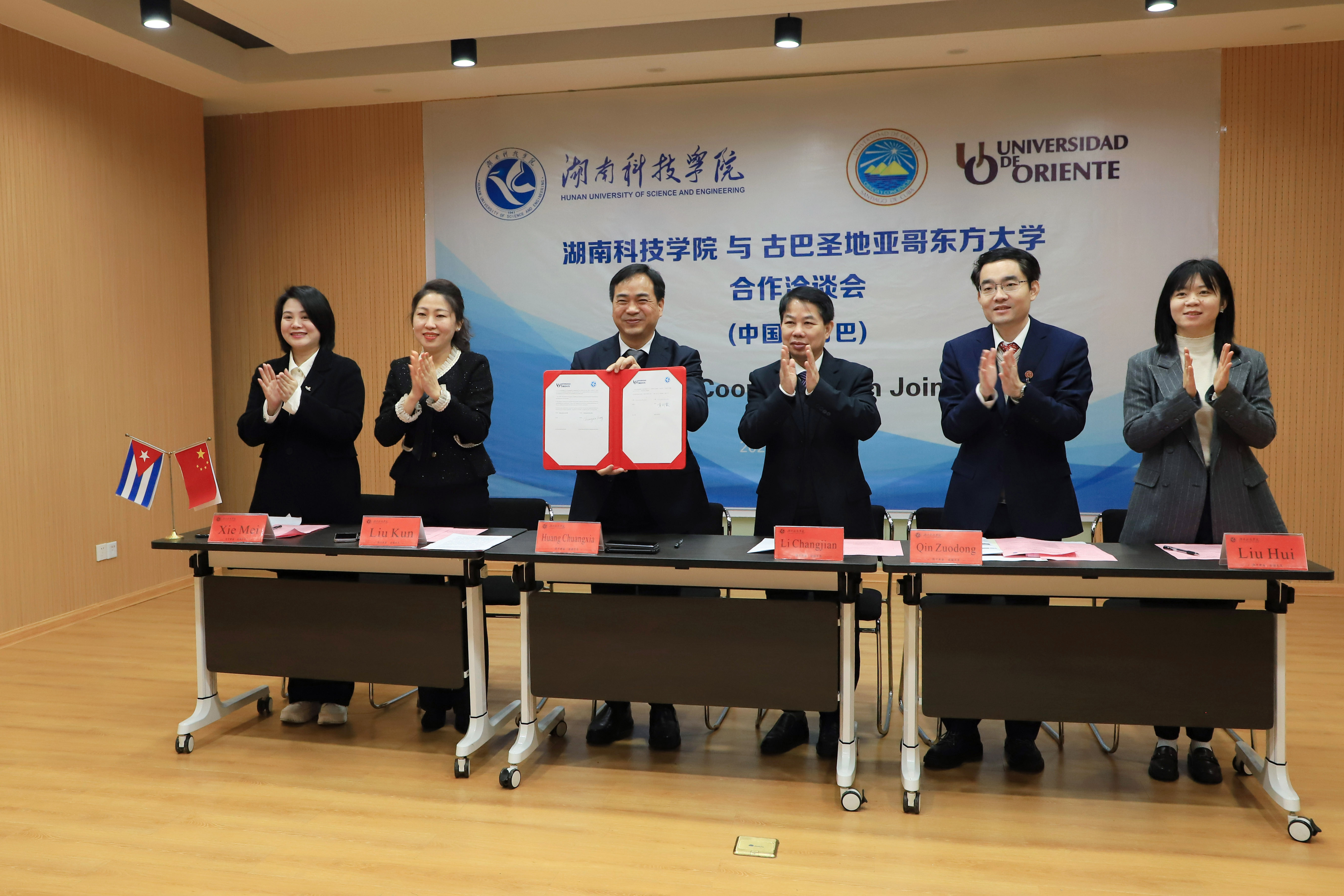 会上,两校就双方的办学规模、学科发展、专业设置等方面进行了介绍,对语言文化课程置换和生物制药领域深度合作进行了探讨,并签署了合作备忘录。黄创霞表示,加强国际交流合作,实现资源共享、优势互补、共同发展,期待两校在“一带一路”倡议框架下共同努力,在国际教育领域取得更多合作成果,促进中古友好关系的发展。