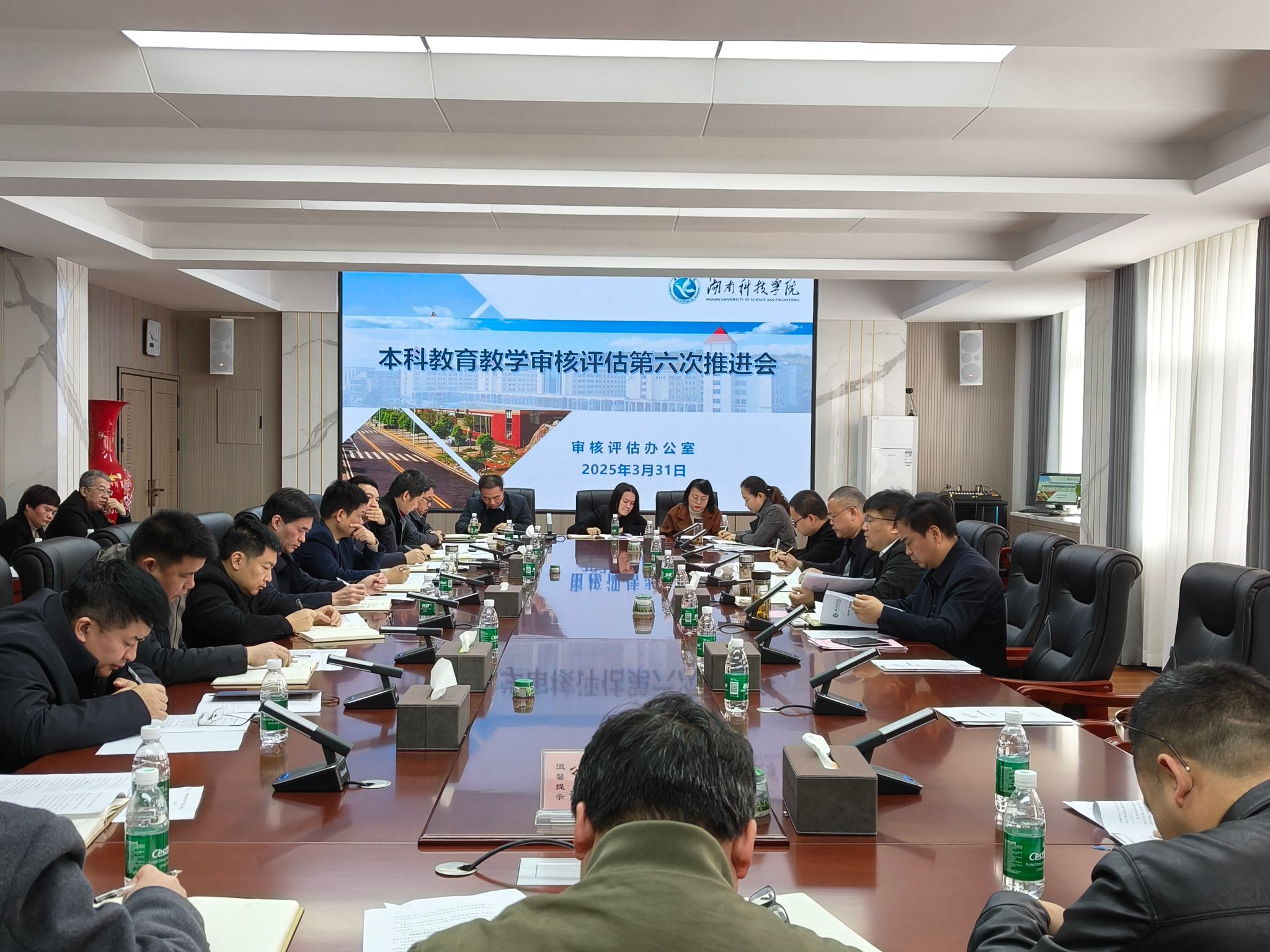 会上,教学质量管理处处长李文汇报了学校审核评估阶段工作情况,与会人员就审核评估工作相关问题进行讨论交流。