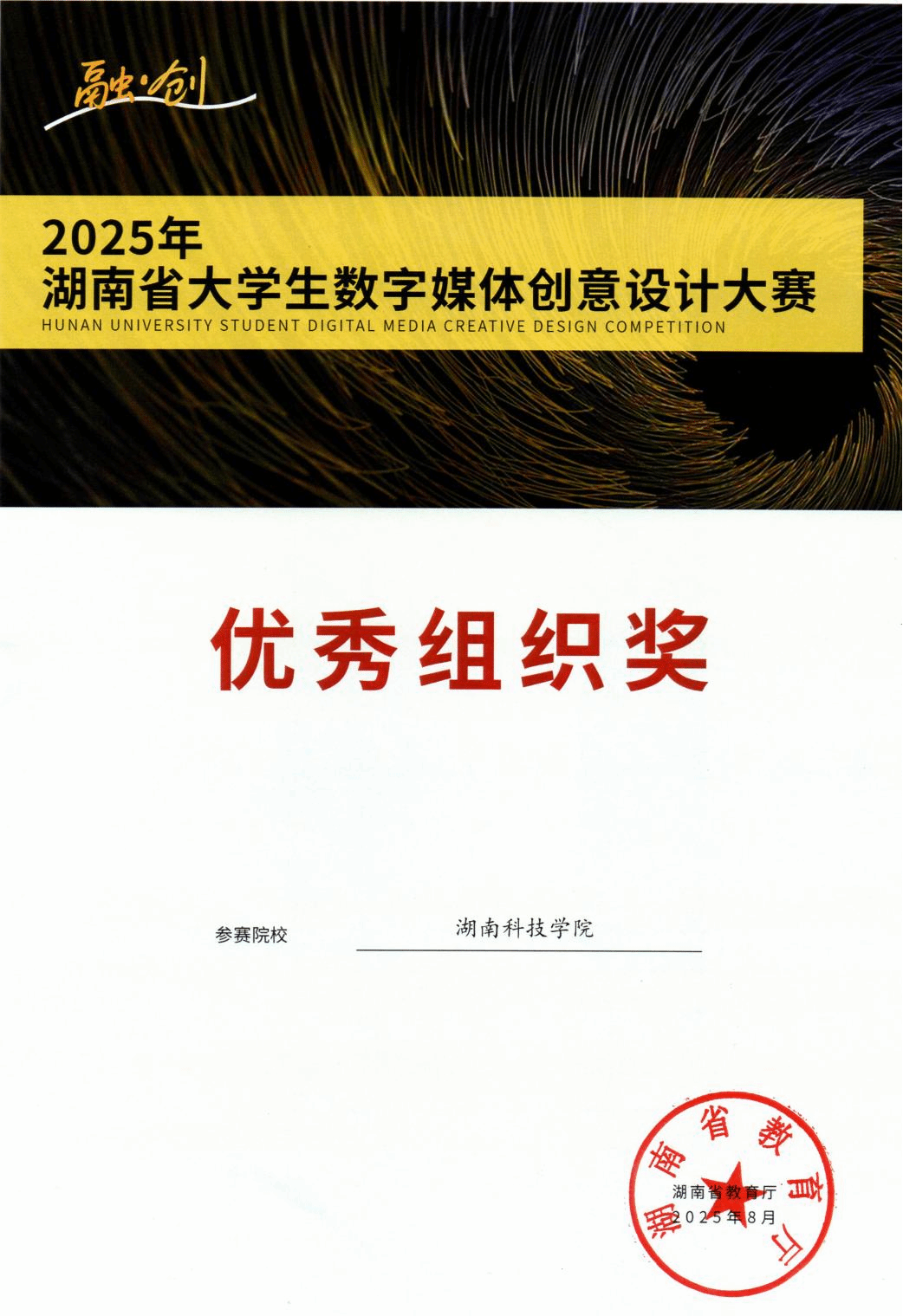 据悉,湖南省大学生数字媒体创意设计大赛由湖南省教育厅主办,是省内数字创意领域的标杆赛事。本届赛事由长沙理工大学承办,共收到全省32所高校推荐的3145件参赛作品,竞争尤为激烈。此次成绩的取得体现了该学院在教学改革和创新人才培养方面取得的显著成效。