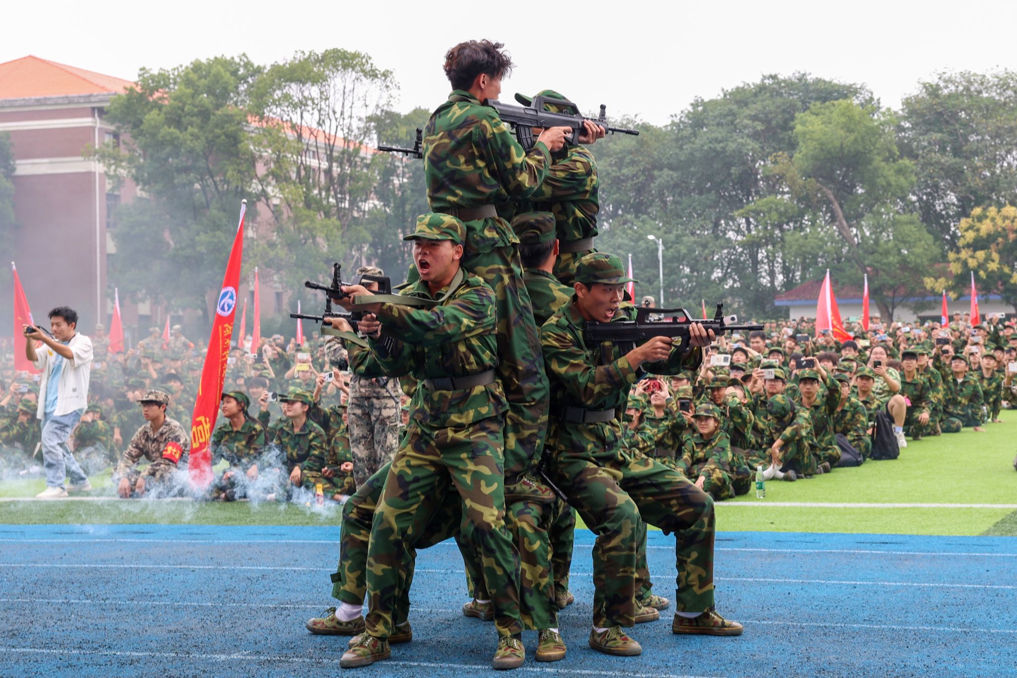 大会在庄严的国歌声中拉开帷幕。优秀连队方阵步伐整齐、精神抖擞地依次通过主席台,他们口号嘹亮、动作刚劲、目光坚定,充分展现了科院学子团结奋进、昂扬向上的精神风貌。