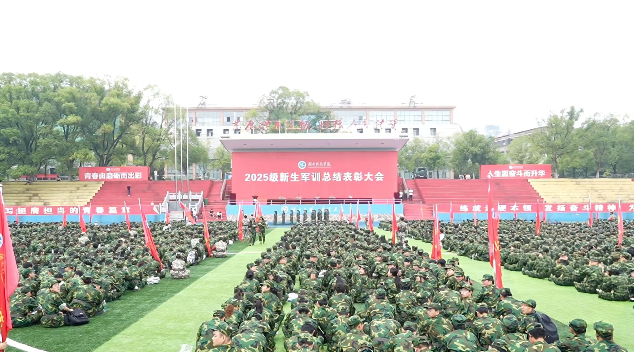 军训总结表彰大会在嘹亮的《中国人民解放军军歌》声中圆满落幕。