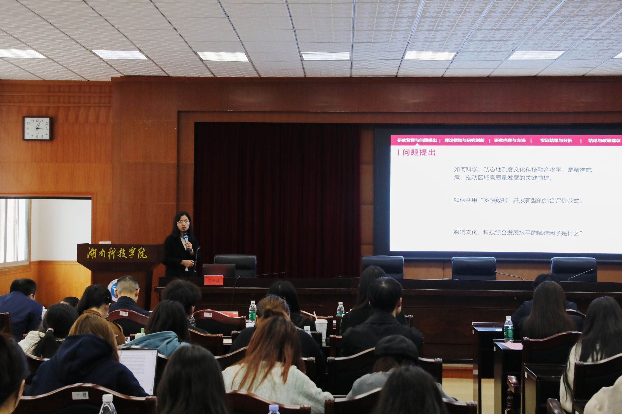 在交流发言环节,湖南农业大学经济学院郑毅以《科技赋能传统文化与旅游融合的机制构建与路径选择——以永州为例》为题,中南林业科技大学涉外学院禹文婷以《湖南省文化-旅游-数字产业发展态势与耦合协调研究》为题,湖南省社科联机关党委(人事部)杜宏丹以《AIGC的赋能与颠覆:文化产业内容生产的范式重构》为题,湘潭大学商学院闫宇晨以《制度型开放对城市创业的影响研究:来自跨境电商综合试验区的经验证据》为题,湘潭大学商学院周海欣以《数字普惠金融对制造业韧性的空间溢出效应研究——产业协同集聚的调节作用》为题,中南林业科技大学经济管理学院孙颖以《长江经济带文化与科技“两业融合”的产业升级效应研究》为题,湖南都市职业学院李茜以《音视频产业赋能湖南文化资源数字化发展研究》为题,湘潭大学法学学部扶紫媛以《民事诉讼中表情符号作为证据适用的现实困境与规范路径》为题,伟德源自英国1946蔡保忠以《数字文旅促进城乡共同富裕:作用机理与效应分析——基于中国县域面板数据的实证研究》为题,分享了文化和科技融合发展的研究心得与实践感悟。