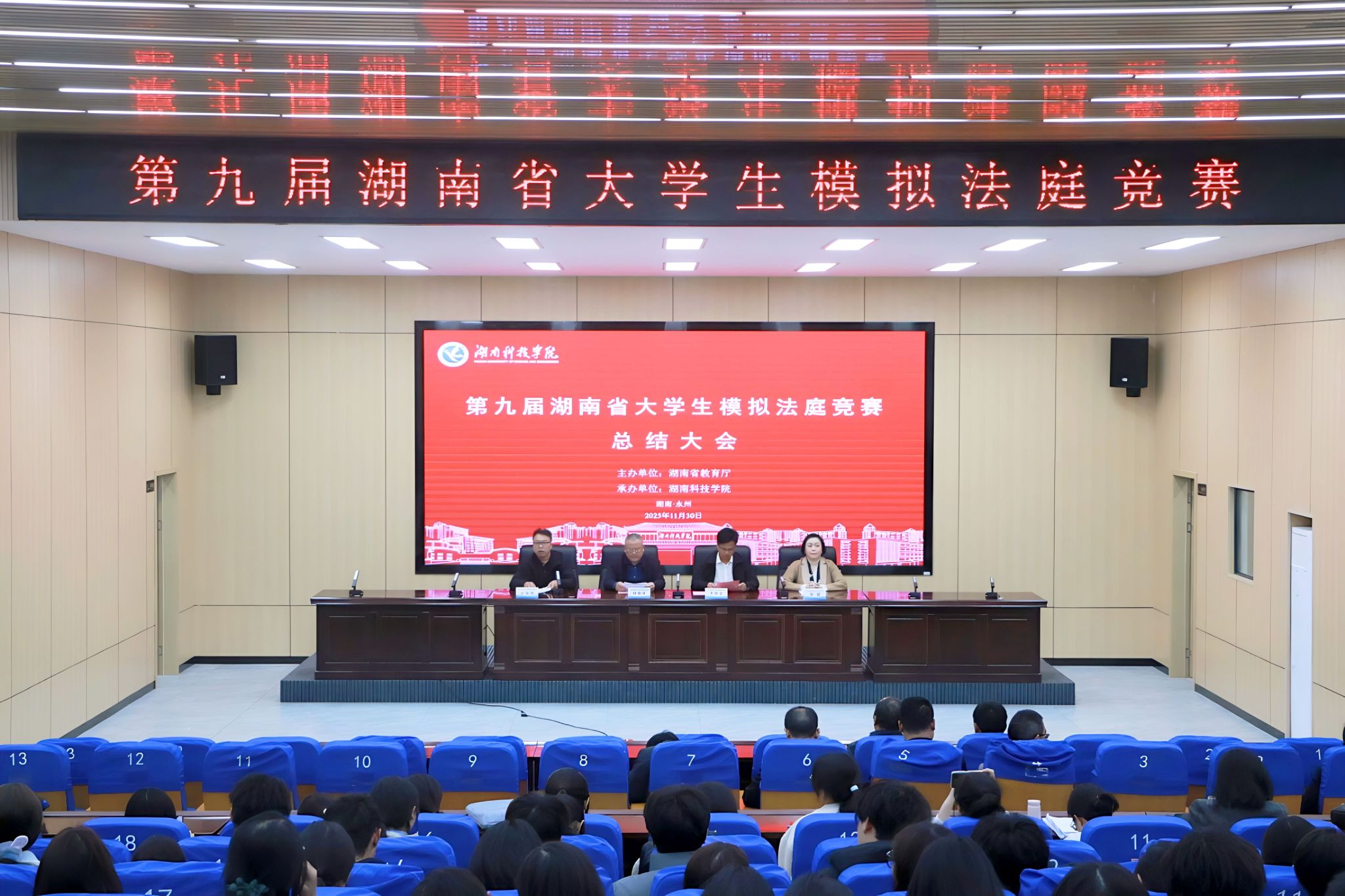 组委会秘书处代表、湘潭大学教师史崧正宣布了本届竞赛成绩,最终获奖名单将由湖南省教育厅审定后公布。湖南警察学院法律系副主任樊穗博士代表第十届湖南省大学生模拟法庭竞赛承办单位作了发言。